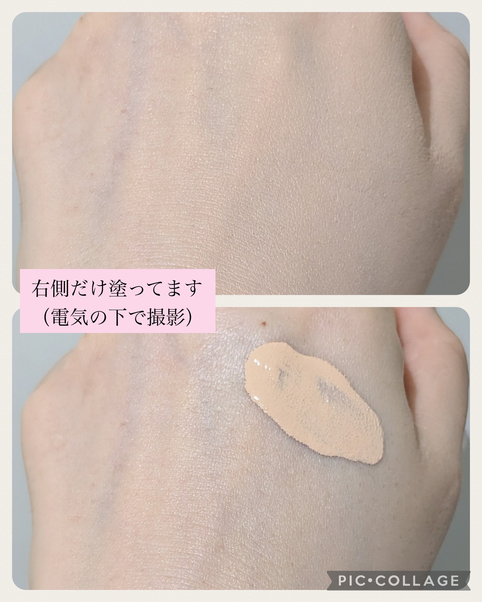 ツヤ仕上がり☆ ナイアシンアミド配合、保湿成分。 使うたび、素肌までうるおいます。 10時間みずみずしいツヤ肌仕上がりが続きます。 肌荒れを防ぐといわれる、ビタミンE配合。 肌に優しく、負担感のない仕上がり。 前に紹介してる、水色(マット)のよりは、 ツヤ肌仕上げが好きな方にオススメです。 カバー力はそんなにないかなぁ。 崩れ方汚くありません。 付けてて、お肌に優しい感じがします。 今日も付けてます😊 紫外線効果そんなに高くないので、 紫外線防止効果の高いものを下地に使ってください!