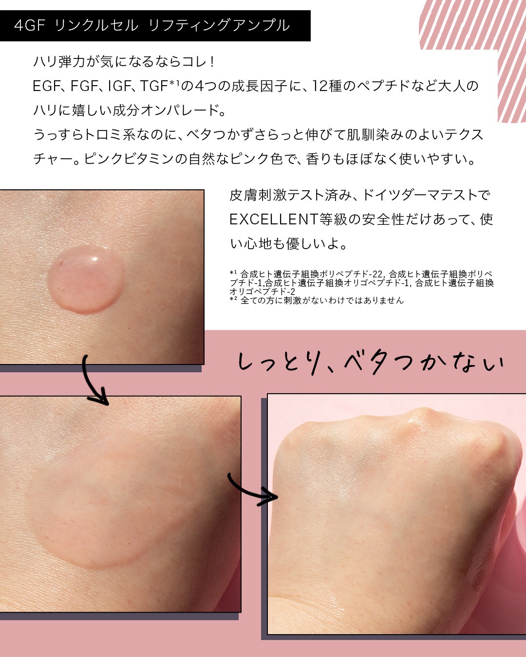 4GFリンクルセルリフティングアンプル✿ฺஐ:*:・✿ฺஐ*:・✿ฺエイジングケアにと思って購入した美容液(*´༥`*)♡エイジングケアでも重すぎなくてベタベタしないから良かった!本当にすっと馴染んでもっちりする⸜(•⌄•)⸝香りもないしピン...