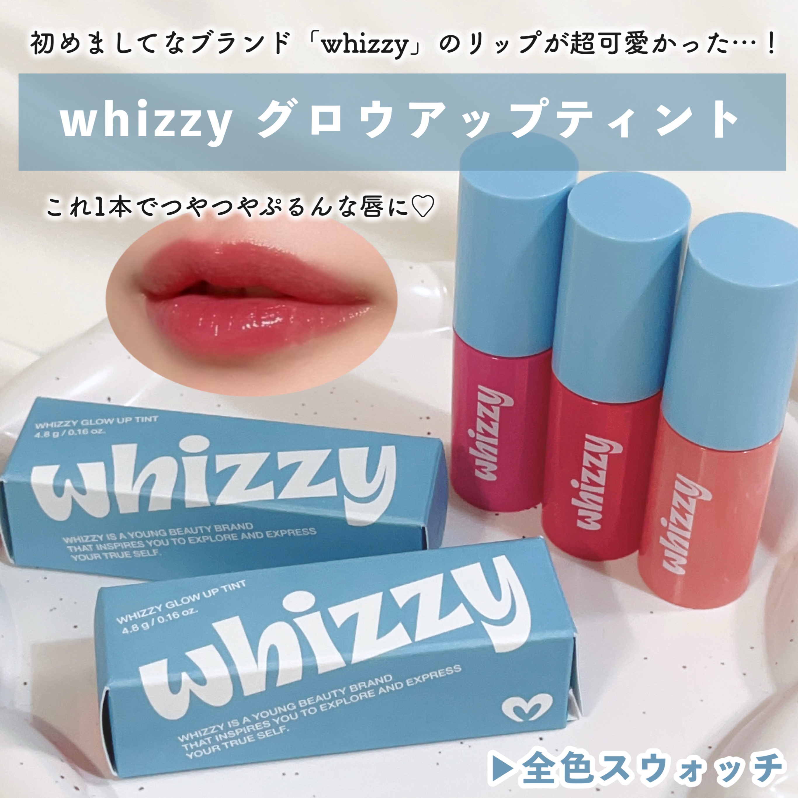 【ティント】つやの奇襲つやが後から襲ってくんの。 whizzy@whizzy.jp▷GLOWUPTINT全6色 塗ってしばらくするとどんどん爆つやが浮き上がる 着色お化け👻系ティント 時間経過で若干深みが増してくるから 個人的にはフルリップは...