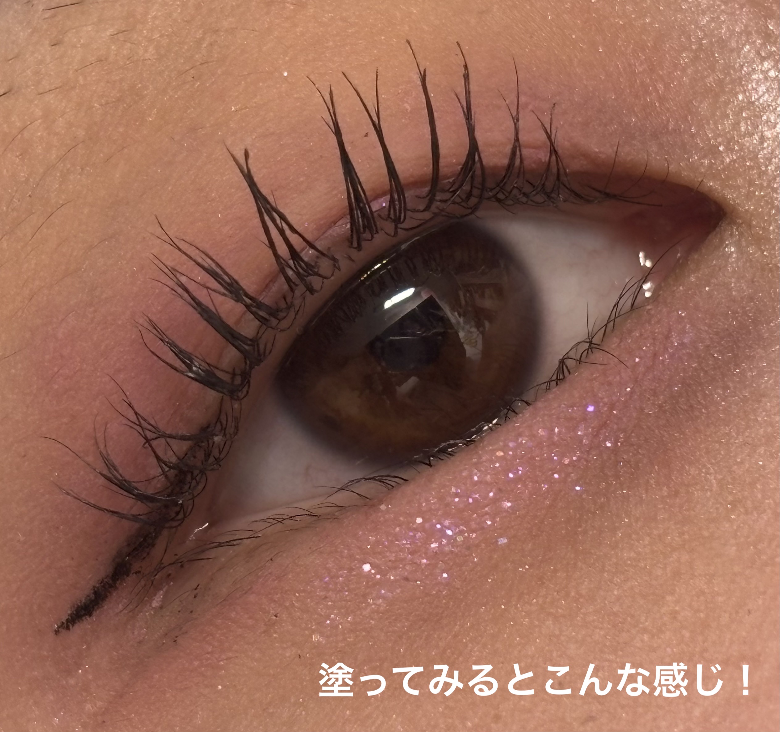 rom&ndベターザンパレット03の薄い色をとってまぶたに乗せます キャンメイクパーフェクトスタイリストアイズNo.14の右上の色をベースに重ねます rom&ndベターザンパレット03の大粒のグリッターラメを涙袋に乗せます rom&ndベターザンパレット03の細かいラメを黒目の上に乗せたら完成です!