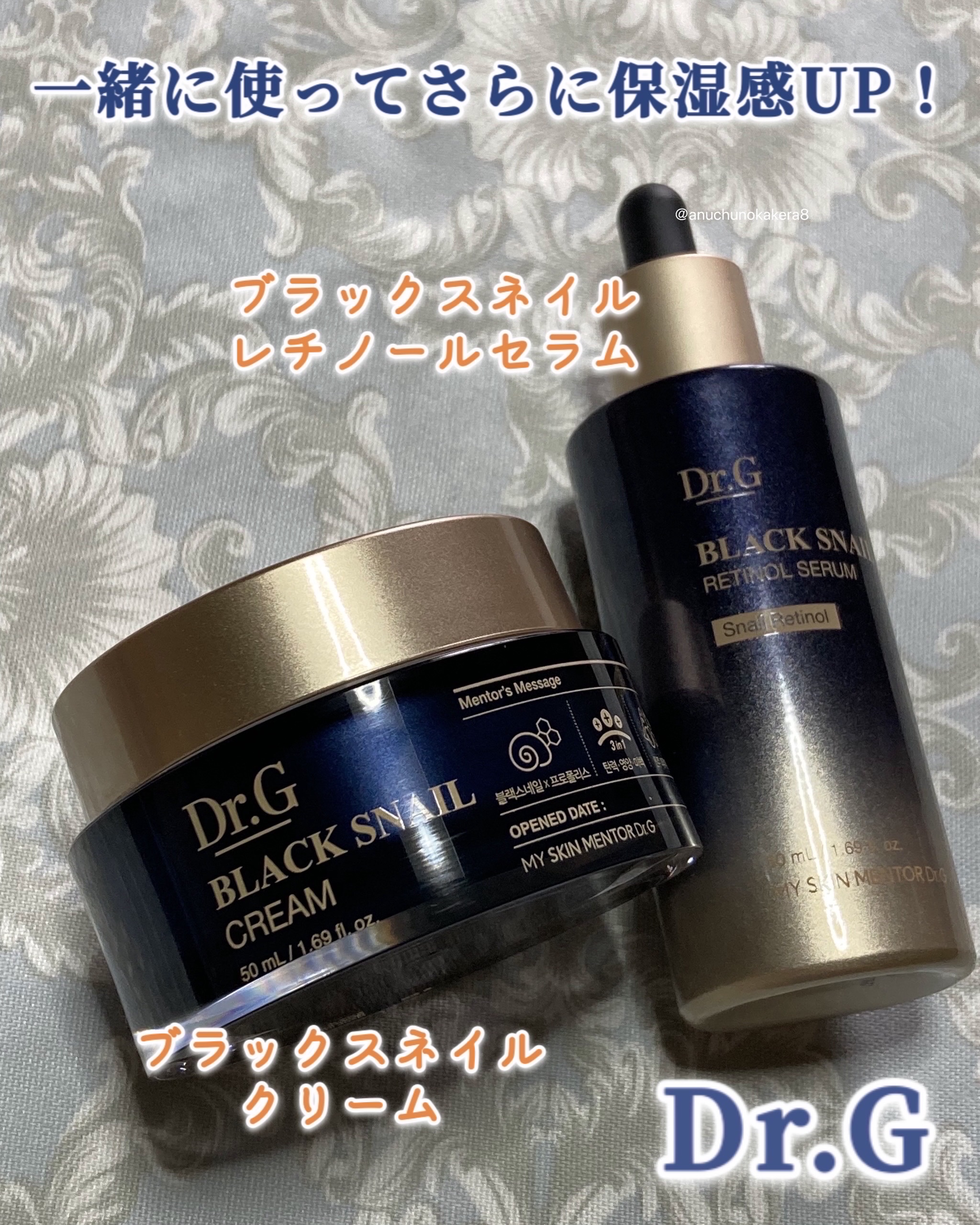 ブラックスネイルの力でツヤ肌に!🐌*********************Dr.Gブラックスネイルレチノールセラムブラックスネイルクリーム*********************ブラックスネイルの力で年齢サインケア✨ハリのあるツヤ肌を作る...