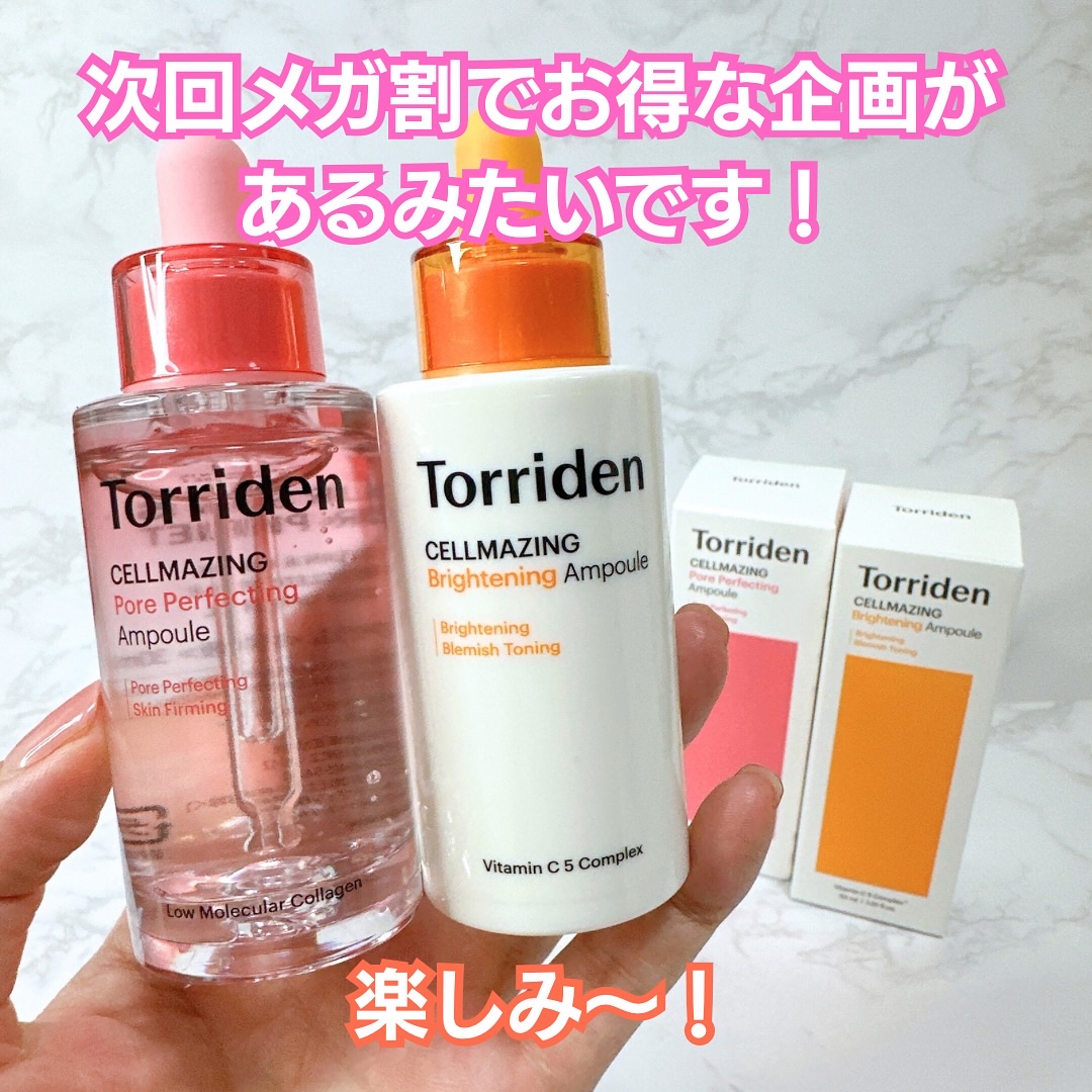 Torridenのセラムは全4種。肌の調子や悩みに合わせて選んで組み合わせられるのが魅力◎私が今回使ったのは毛穴やハリ弾力ケアにおすすめの2種類!✔︎セルメイジングビタCアンプルビタミン系の美容液はやっぱり朝に使いたくなるよね🌞という...