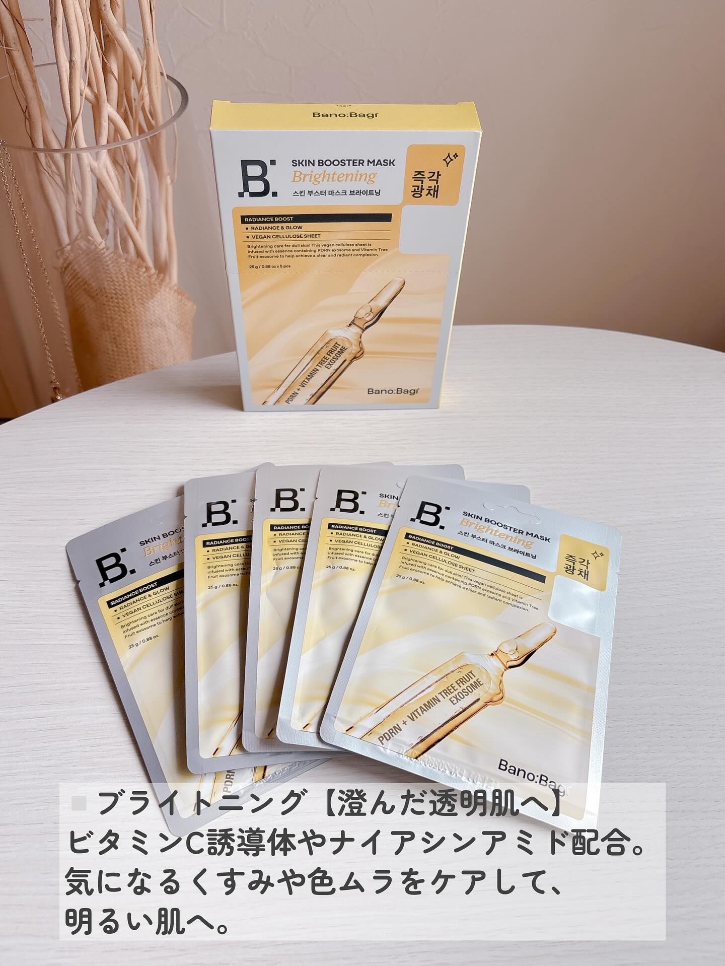 \肌悩みに合わせて選べる4タイプ/【BANOBAGI】スキンブースターマスクPDRN×デュアルエクソソーム配合のシートマスク。個包装で1箱5枚入り⭐︎4タイプあって肌悩みに合わせて選べるよ♩🩶ポアケアティーツリーやウィッチヘー...