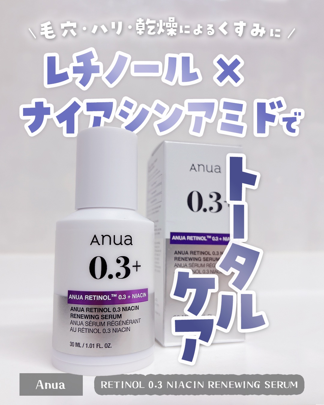 攻めるの?守るの?両方でしょ!!Anua@anua.jpレチノール0.3ナイアシンリニューイングセラム最近レチノール*1から離れてましたが、久々レチノール*1美容液です!!そして、安定Anuaです!! レチノール*1×ナイアシンアミド*2攻め...