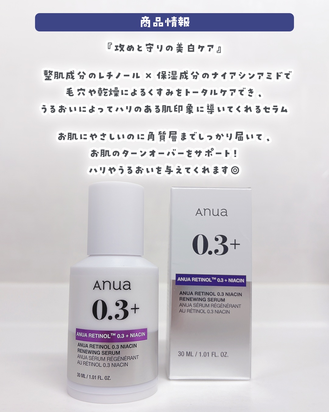 商品詳細情報Anua レチノール0.3 ナイアシンリニューイングセラム