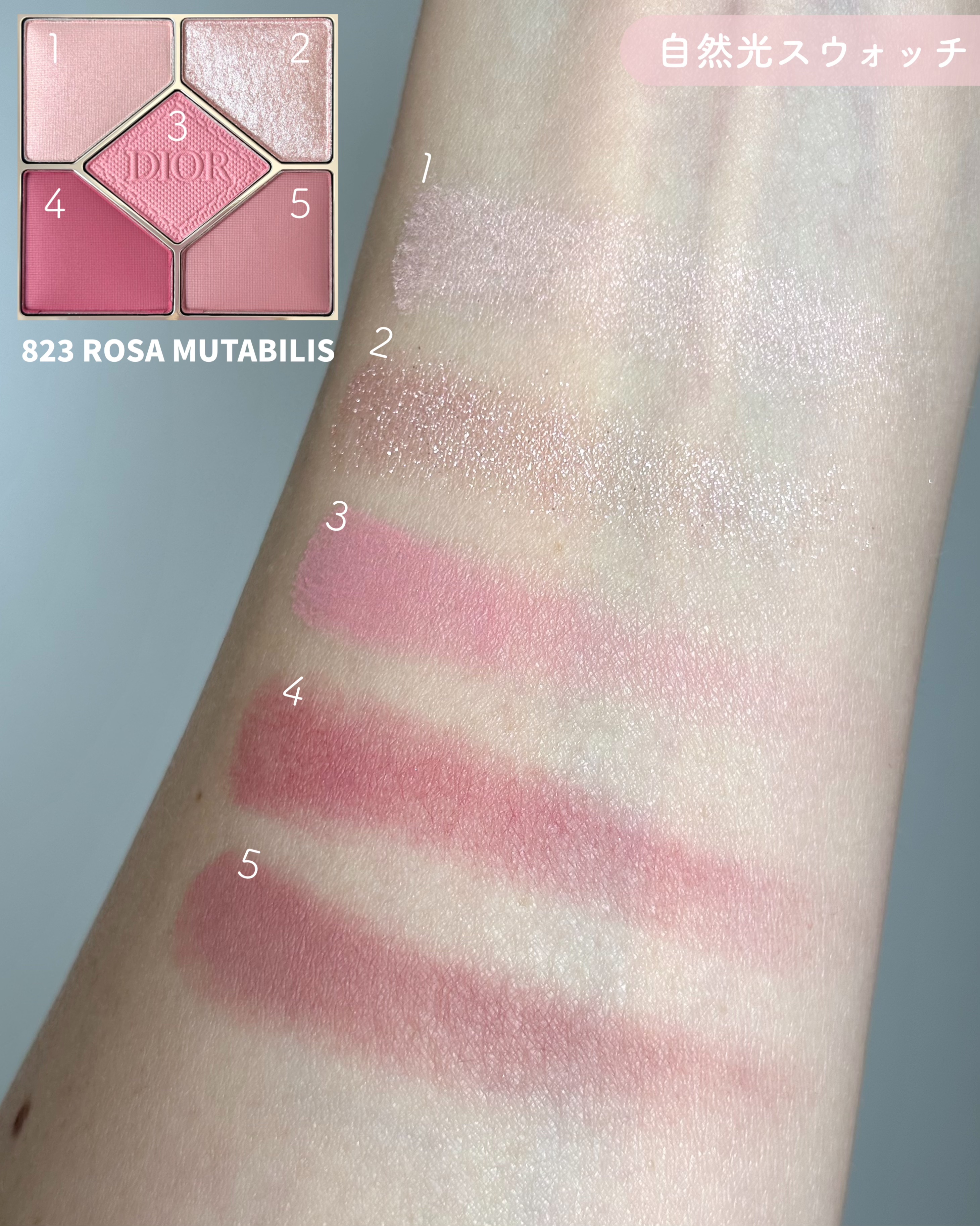 DIOR♡ディオールショウサンククルール✨名前は変わらず一昨年リニューアルした『823ローザムタビリス』🤍色は旧と変わったと感じる🫶この色、ほんと可愛いよ😍💓ローズチュールよりもピンク感あってきらんきらんのラメ艶がたまらない✨好きなパレット🩷...