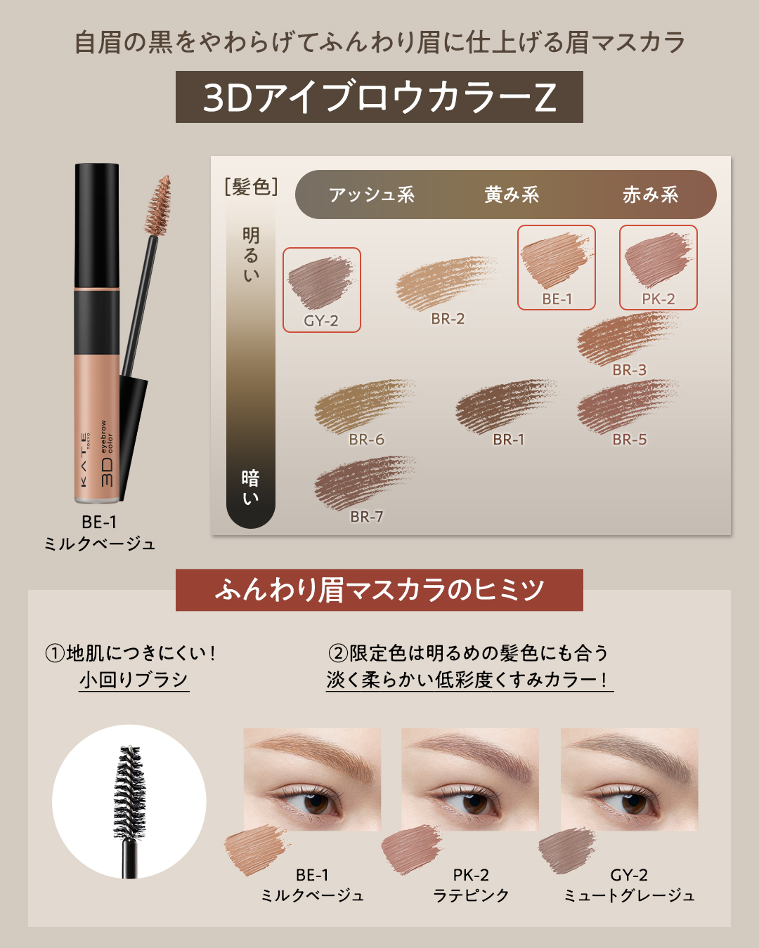 KATE/ケイト3DアイブロウカラーZ各色:935円(税込)2025.07.19限定販売GY-2ミュートグレージュPK-2ラテピンク✼••••✼••••✼••••✼自眉の黒をやわらげてふんわり仕上がる脱色級※眉マスカラ ※脱色したような色合い...