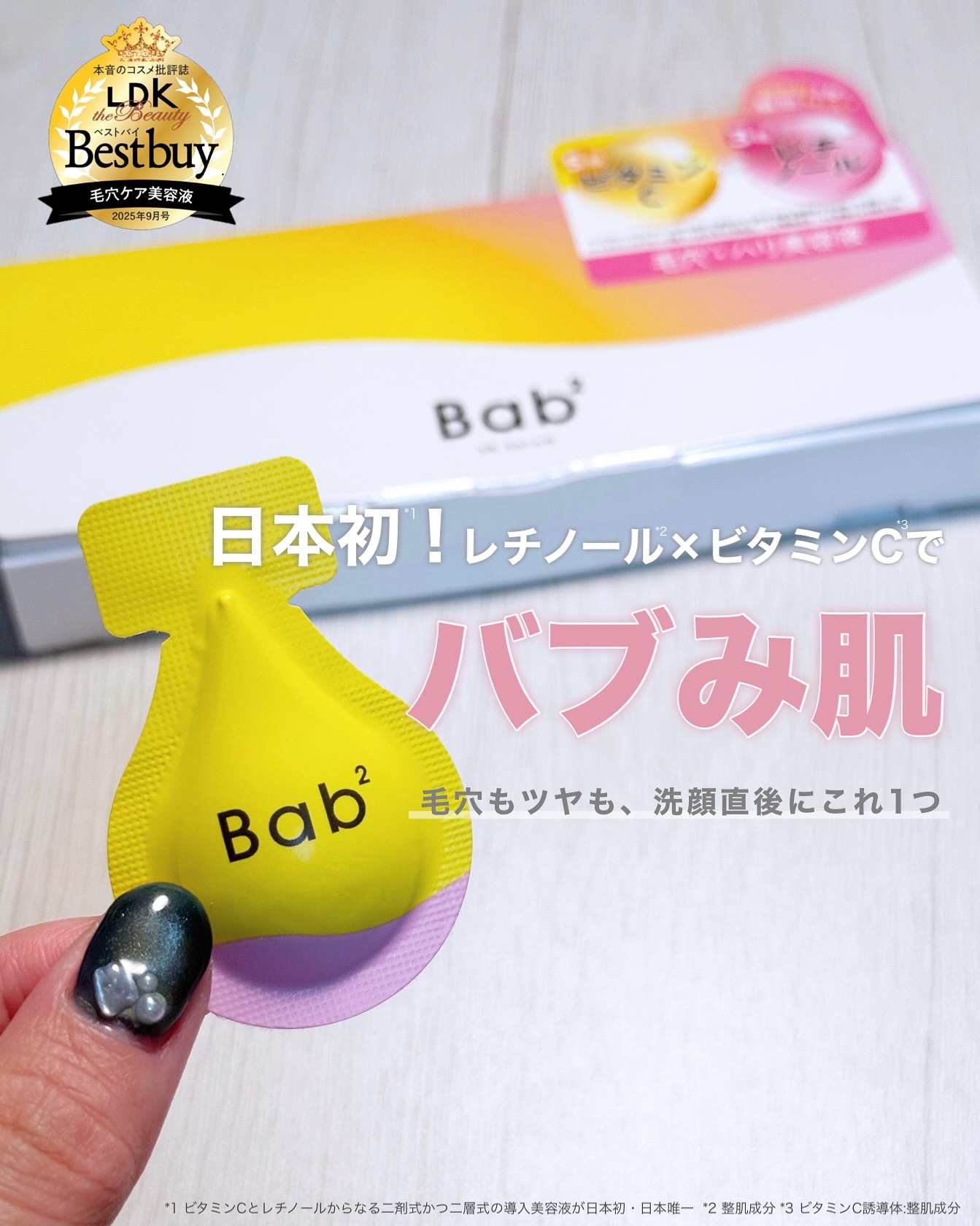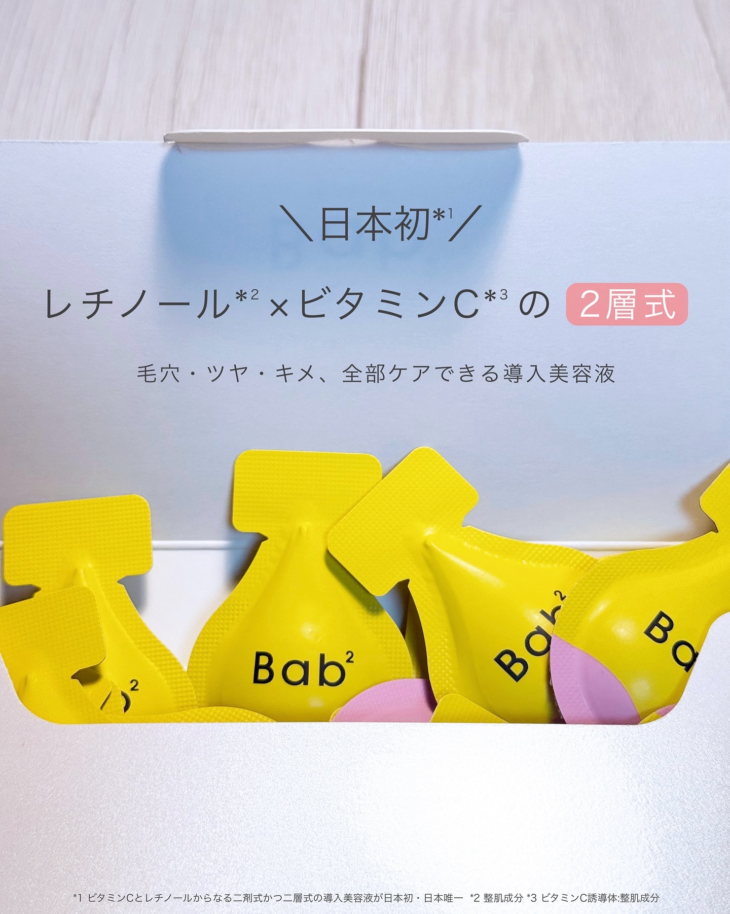 毛穴ケアもハリケアもどっちも欲しい欲張りさんに💛✨Bab2(バブバブ)ビタレチセラムは、日本初*²のビタミンC*×レチノール*二層式美容液!使う直前に混ぜるから、ビタミンC*もレチノール*もフレッシュなままお肌へお届け🍋💛サラッと軽いけど、肌...