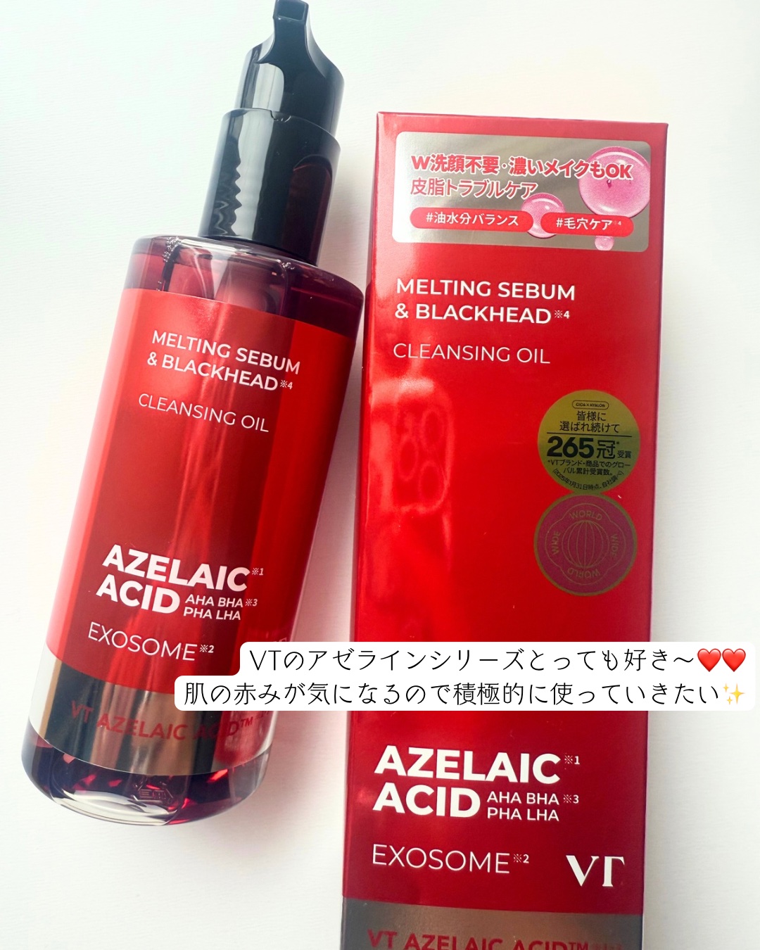ㅤㅤㅤㅤㅤㅤ\赤い色のクレンジング♥️/肌質改善(ニキビ・ブラックヘッド)にはクレンジングから見直せ!❤️🔥ブラックヘッド、ホワイトヘッドケアにもおすすめのVTcosmeticsアゼライン酸クレンジングオイルメイクだけでなく古い角質と老廃物...
