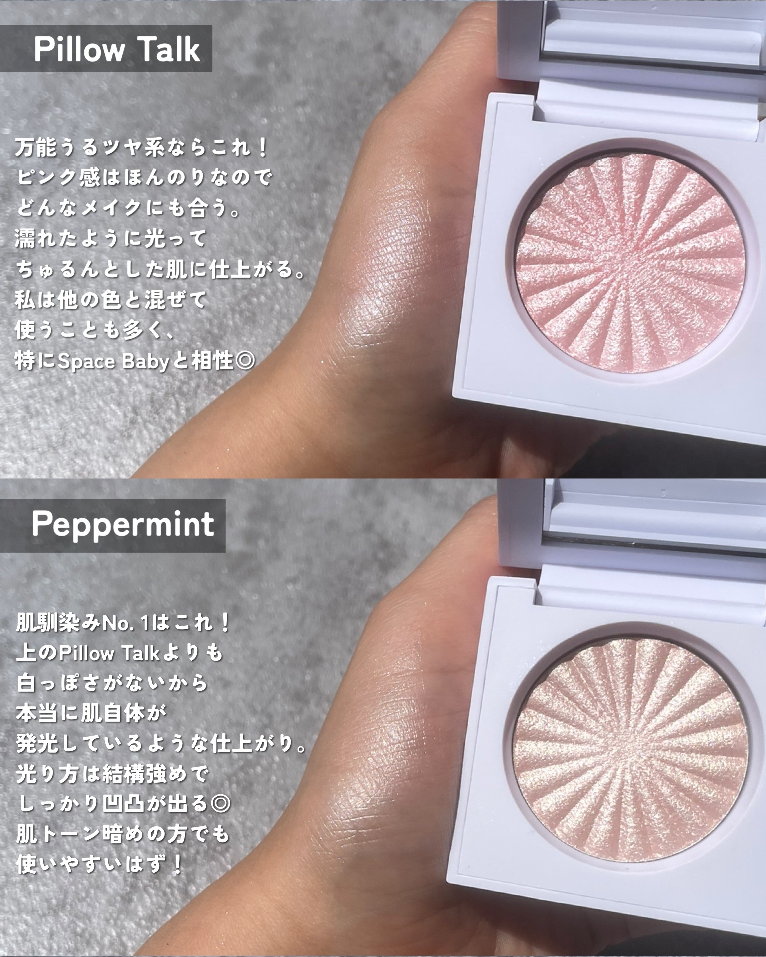 - 【Cloud9】イソドデカン、酸化チタン、マイカ、ジヘプタン酸ネオペンチルグリコール、ステアリン酸亜鉛、タルク、パルミチン酸エチルヘキシル、フェノキシエタノール、エタノール 【Glazed Donut】イソドデカン、マイカ、タルク、酸化チタン、ジヘプタン酸ネオペンチルグリコール、ステアリン酸亜鉛、パルミチン酸エチルヘキシル、フェノキシエタノール、酸化鉄、エタノール、酸化スズ【Pillow Talk】イソドデカン、タルク、マイカ、酸化チタン、ジヘプタン酸ネオペンチルグリコール、ステアリン酸亜鉛、パルミチン酸エチルヘキシル、フェノキシエタノール、酸化鉄、エタノール、赤201、酸化スズ【Star Island】イソドデカン、マイカ、タルク、酸化チタン、ジヘプタン酸ネオペンチルグリコール、ステアリン酸亜鉛、パルミチン酸エチルヘキシル、酸化鉄、フェノキシエタノール、カオリン、石英、エタノール【Peppermint】イソドデカン、マイカ、酸化チタン、ジヘプタン酸ネオペンチルグリコール、タルク、ステアリン酸亜鉛、パルミチン酸エチルヘキシル、酸化鉄、フェノキシエタノール、カオリン、石英、エタノール【Sugar Cookie】イソドデカン、マイカ、酸化チタン、ジヘプタン酸ネオペンチルグリコール、タルク、ステアリン酸亜鉛、パルミチン酸エチルヘキシル、酸化鉄、フェノキシエタノール、石英、カオリン、エタノール【Space Baby】 イソドデカン、マイカ、酸化チタン、ジヘプタン酸ネオペンチルグリコール、ステアリン酸亜鉛、タルク、パルミチン酸エチルヘキシル、フェノキシエタノール、エタノール 【Out of This World】 イソドデカン、酸化チタン、マイカ、ジヘプタン酸ネオペンチルグリコール、ステアリン酸亜鉛、パルミチン酸エチルヘキシル、タルク、フェノキシエタノール、酸化スズ、エタノール 【Rodeo Drive】 イソドデカン、マイカ、タルク、酸化チタン、ステアリン酸亜鉛、ジヘプタン酸ネオペンチルグリコール、パルミチン酸エチルヘキシル、酸化鉄、フェノキシエタノール、酸化スズ、エタノール、赤202【Bali】イソドデカン、タルク、マイカ、酸化チタン、ジヘプタン酸ネオペンチルグリコール、ステアリン酸亜鉛、パルミチン酸エチルヘキシル、フェノキシエタノール、酸化鉄、酸化スズ、エタノール 【Blissful】イソドデカン、マイカ、タルク、ステアリン酸亜鉛、酸化チタン、ジヘプタン酸ネオペンチルグリコール、パルミチン酸エチルヘキシル、酸化鉄、フェノキシエタノール、エタノール
