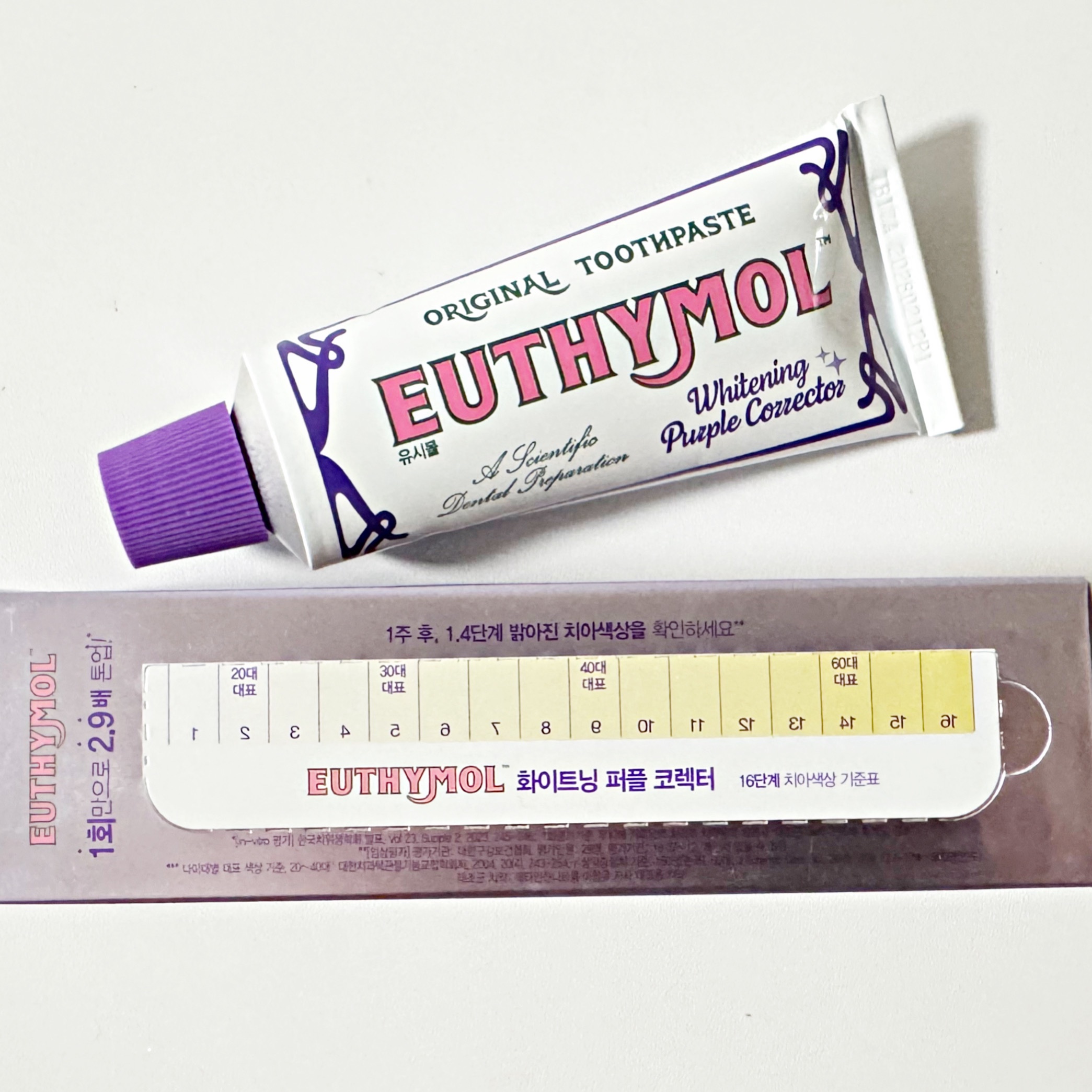 EUTHMOLホワイトニングパープルコレクター歯磨き口臭や歯の黄ばみが気になる方におすすめ!きいろの補色のムラサキ色のペースト!かなり爽やか爽快感強めの歯磨き粉になります!着色バリア防止バリアで着色しにくく!使った後も爽やか感がかなり続いてく...