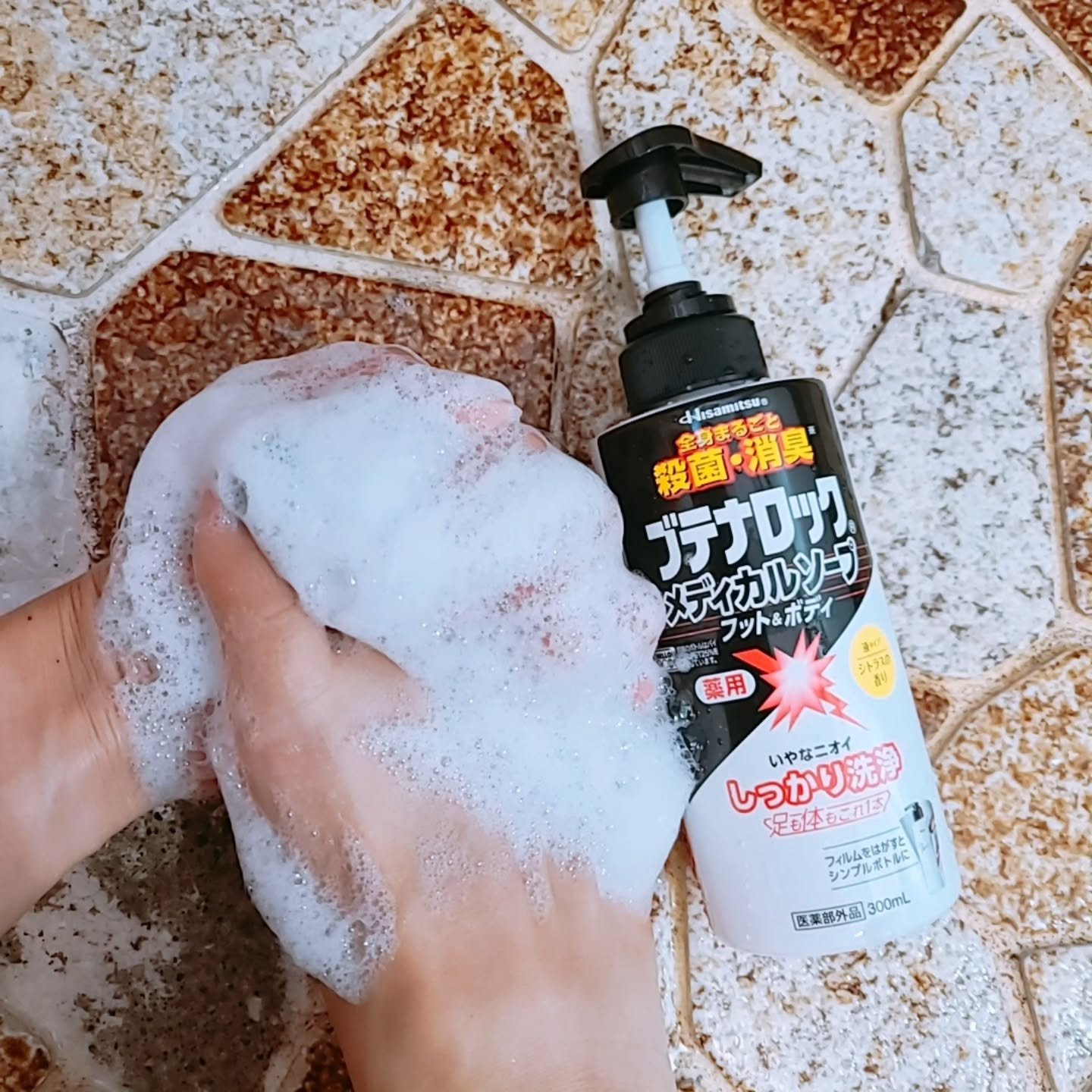 \足も体もこれ1本!/医薬部外品:ブテナロック®メディカルソープフット&ボディ(販売名:ブテナロック®メディカルソープフット&ボディ)足や体のニオイの原因菌を殺菌して、ニオイを防ぐ薬用ソープ🫧足だけじゃなく全身に使えるよ😌子どもがサッカーから...