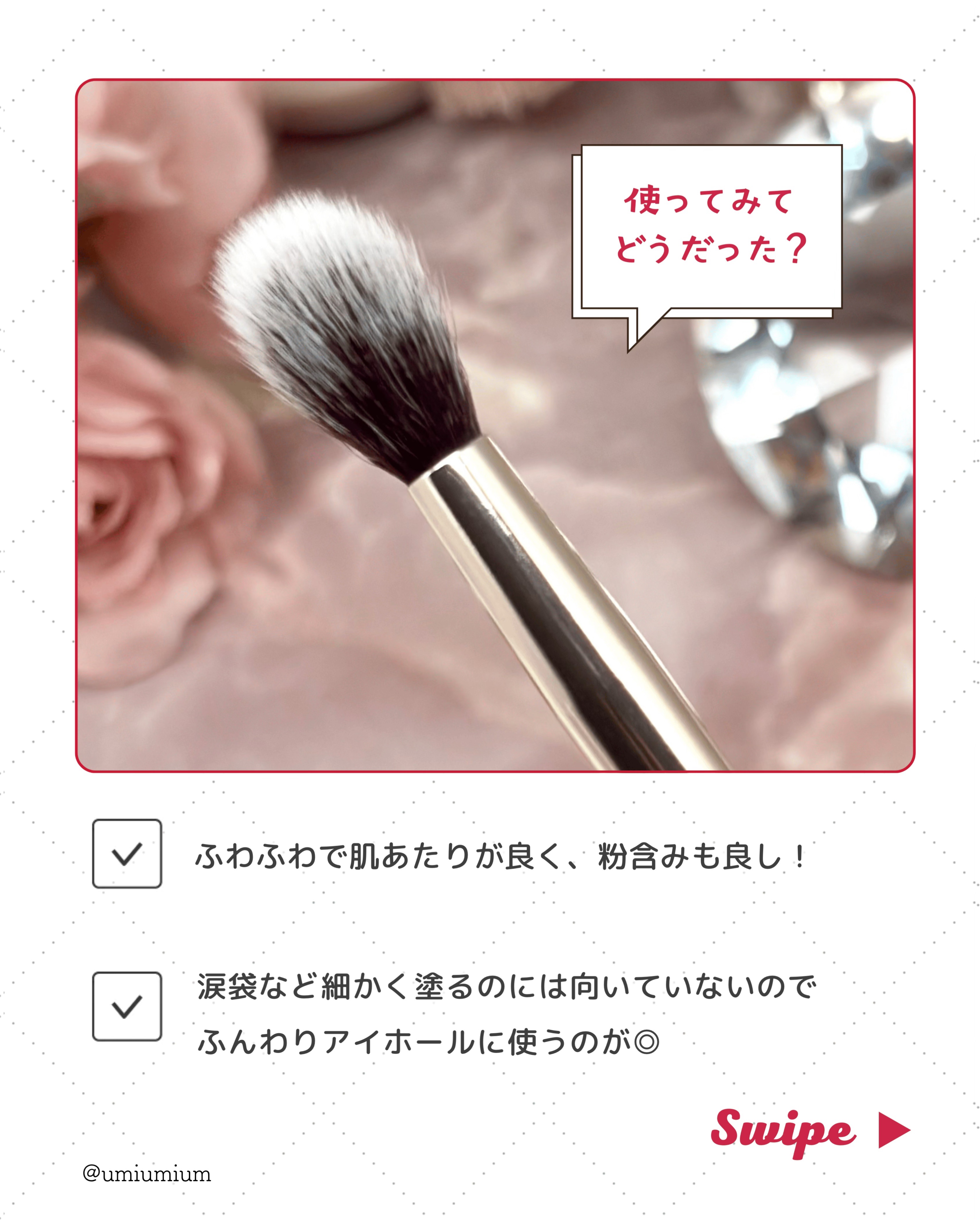 | ファン型なので、先端部分で狭い範囲にもパウダーを塗布しやすくて良いです◎ | 詳細を見る | ||