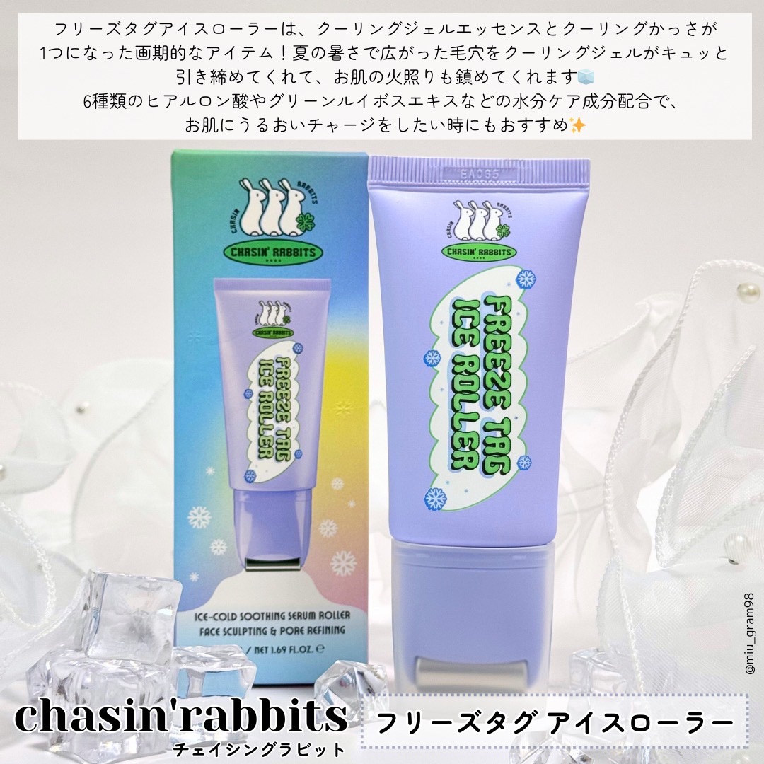 CHASIN'RABBITSフリーズタグアイスローラー🧊火照った肌や赤みが気になる肌におすすめ!毛穴の引き締めにもグリーンルイボスエキス6種ヒアルロン酸ハルンガナマダガスカリエンシスエキスメンタアルベンシスエキス付属のカッサローラーが手よりか...