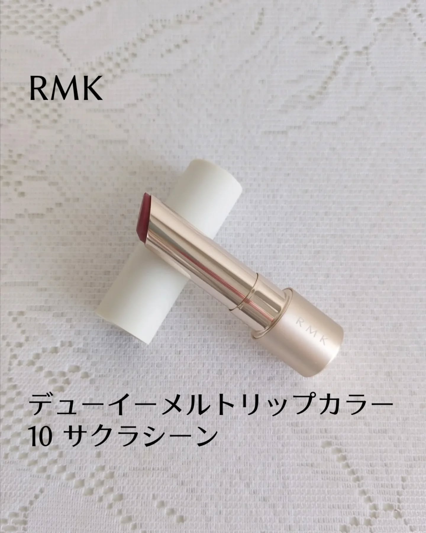 10サクラシーンするするなめらかな塗り心地。軽いんだけどむっちりとしていてほんのりツヤ感のある仕上がりに。もちも良く、うるおうような使用感。サクラシーンはベージィピンクで使いやすいカラーだよ。#RMK#デューイーメルトリップカラー...