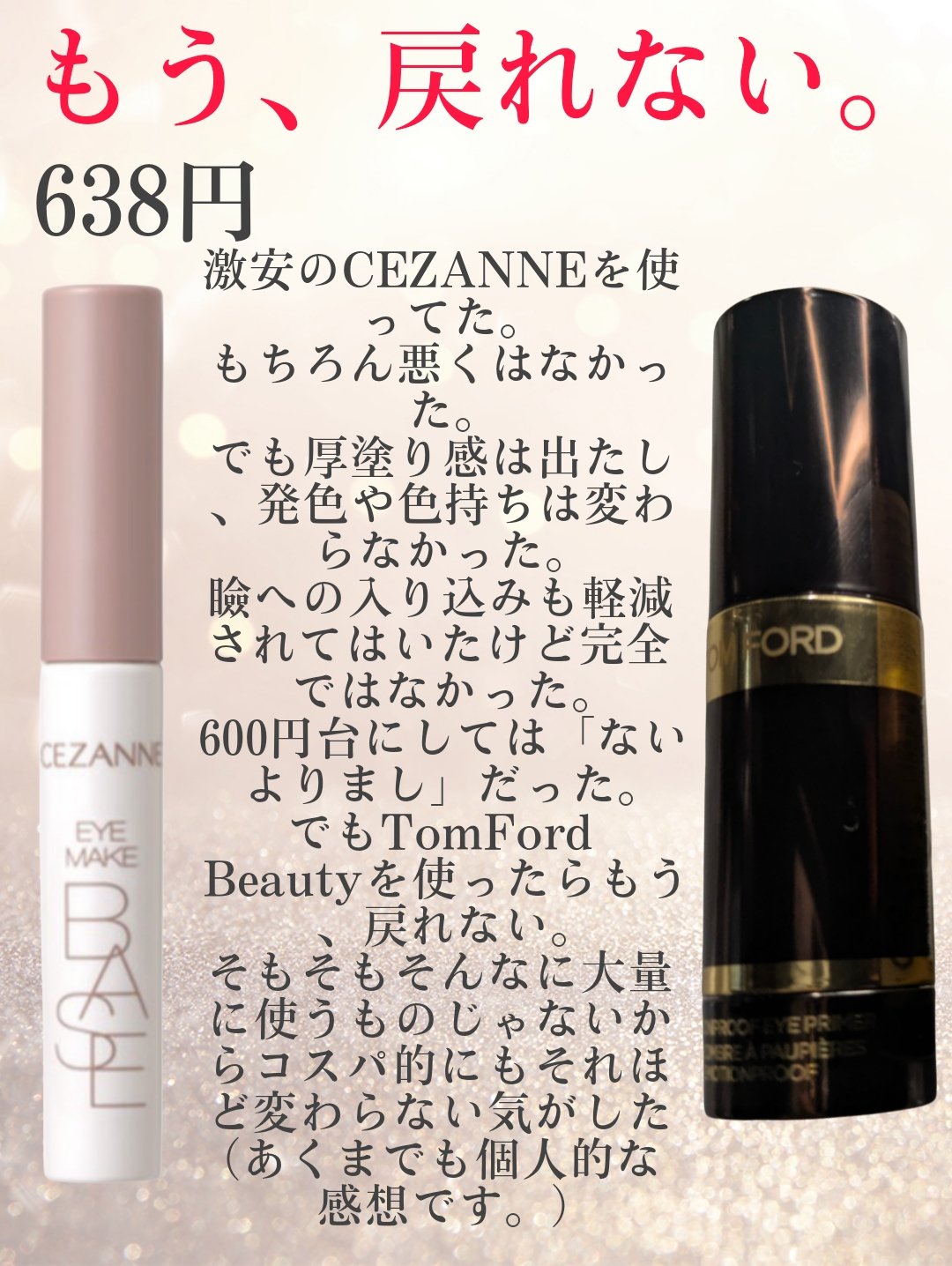 アイシャドウベースに欠かせないアイプライマー 高いけど人気があるトムフォード使ってみた! 瞼がパサパサしない アイシャドウが密着してくれる チップの形が塗りやすくリキッドも瞼に広げやすい