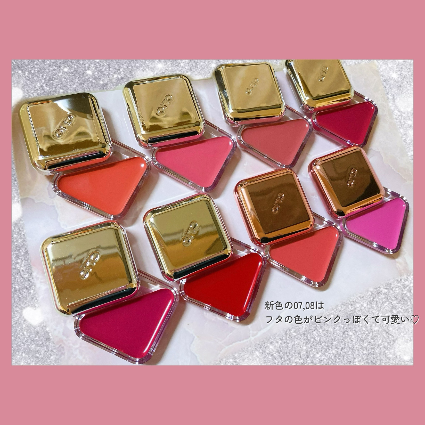 - ヘルシーで華やかな印象を叶える、リップやチークなどマルチに使える透明感のあるカラーのバーム。 <01 ピーチフラッシュ(PEACH FLUSH)> ヘルシーに表現されるピーチ コーラル カラー <02 バニーブラッシュ(BUNNY BLUSH)> 可愛らしく清純なベビーピンク カラー <03 ロージーブロー(ROSY BLOW)> 落ち着きのある成熟したロージーカラー <04 フロムベリー(FROW BERRY)> 紫色を一滴追加、デイリーベリーカラー <05 チェリーシャワー(CHERRY SHOWER)> イキイキとした血色感を与えるチェリー 果汁カラー <06 アップルガーデン(APPLE GARDEN)> クリアに満ちるレッドアップルカラー <07 アプリコット ブリーズ(APRICOT BREEZE)> やわらかい陽ざしのぬくもりを閉じ込めたサンキスドコーラル <08 バブリープラム(BUBLY PLUM)> 活気に満ちたライラックの花のように爽やかなライブリーパープル <100 シュガーリボン(SUGAR RIBBON)> ふんわり甘く、きゅんをひとさじしたようなローズピンクカラー