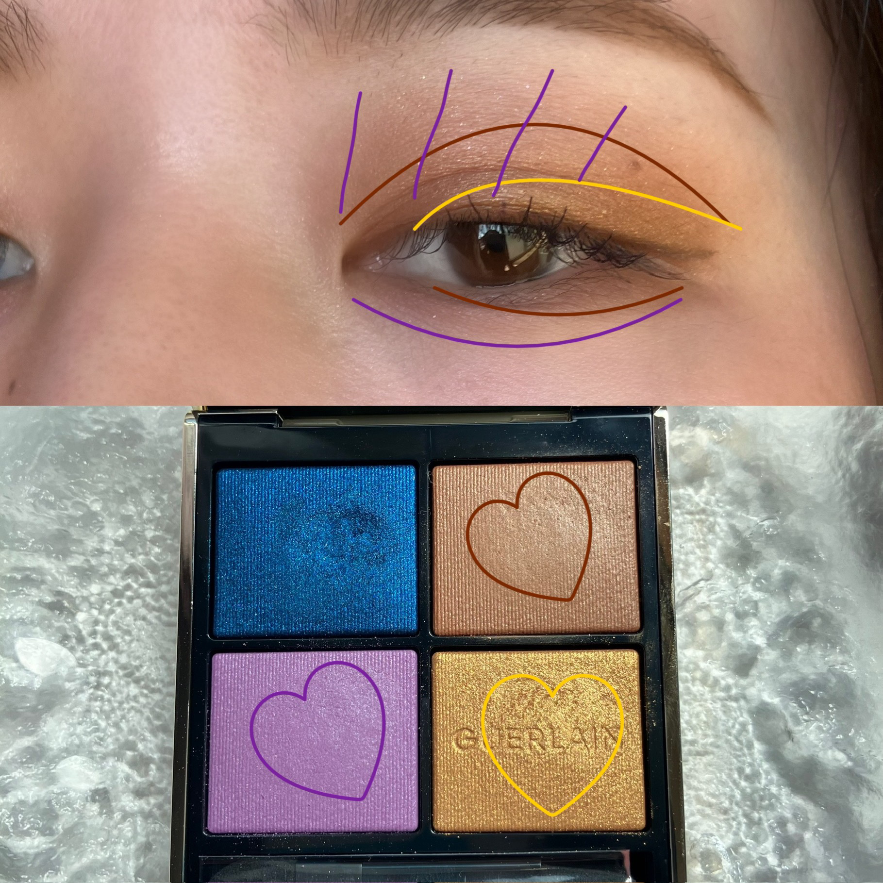 .#えいな毎日メイク.✔︎GUERLAIN #オンブルジェ129ハニーアンバー.はい、可愛い。目元が完全に春ですね〜💐今日は左上をベースにしたからかちょっと淡めの仕上がり締め色にしたブラウンにもピンクラメが入っててめちゃくちゃ可愛い🫶.@gu...