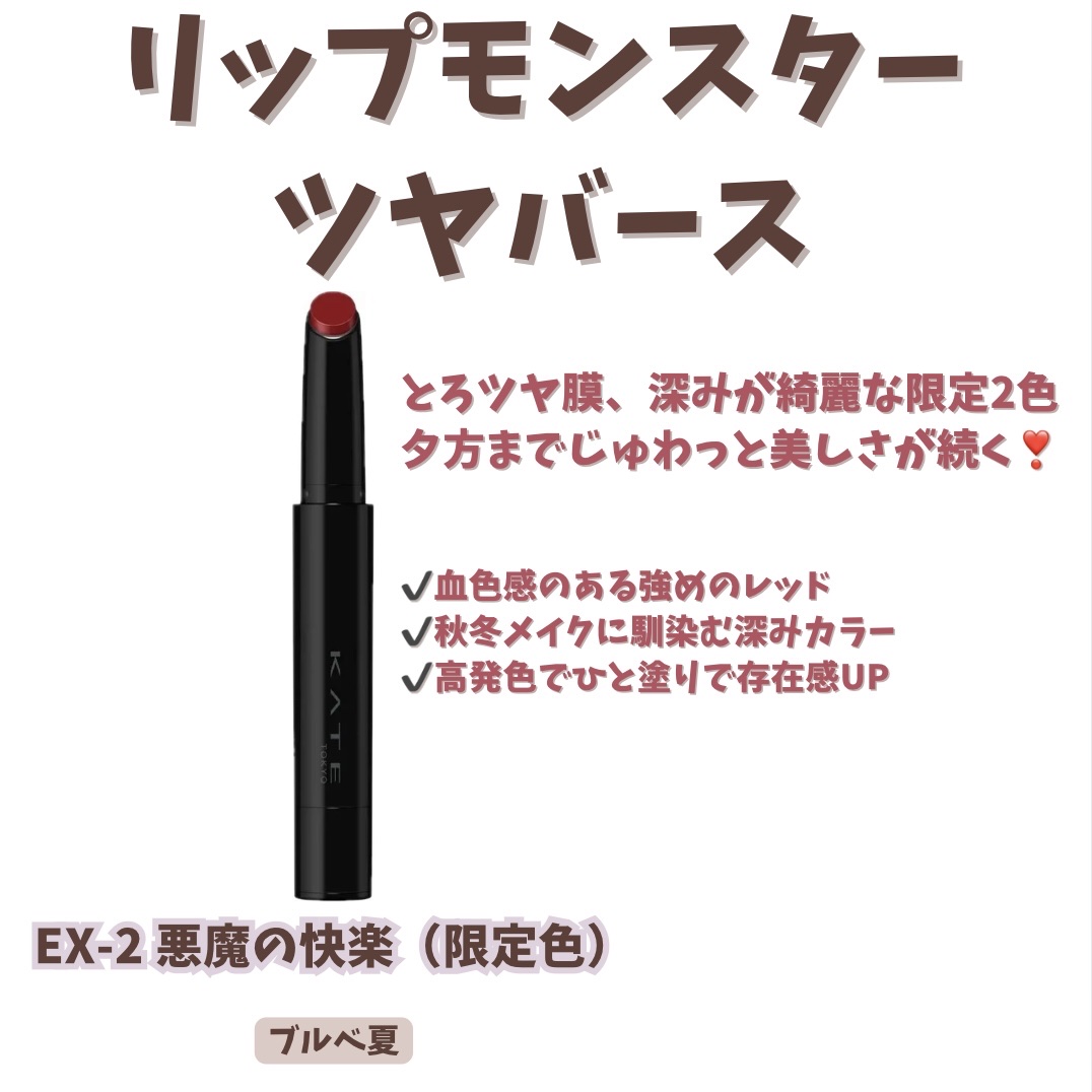 落ちにくくて継続力抜群なバズり最強リップ💄✨⬇️🌺KATEリップモンスター🌺KATEリップモンスターツヤバースKATE新色リップ2種類徹底解説していくよ🙋🏼♀️🌺リップモンスターEX-9戦慄の喜笑(限定色)✔️ディープで鮮やかな赤✔️カラー...