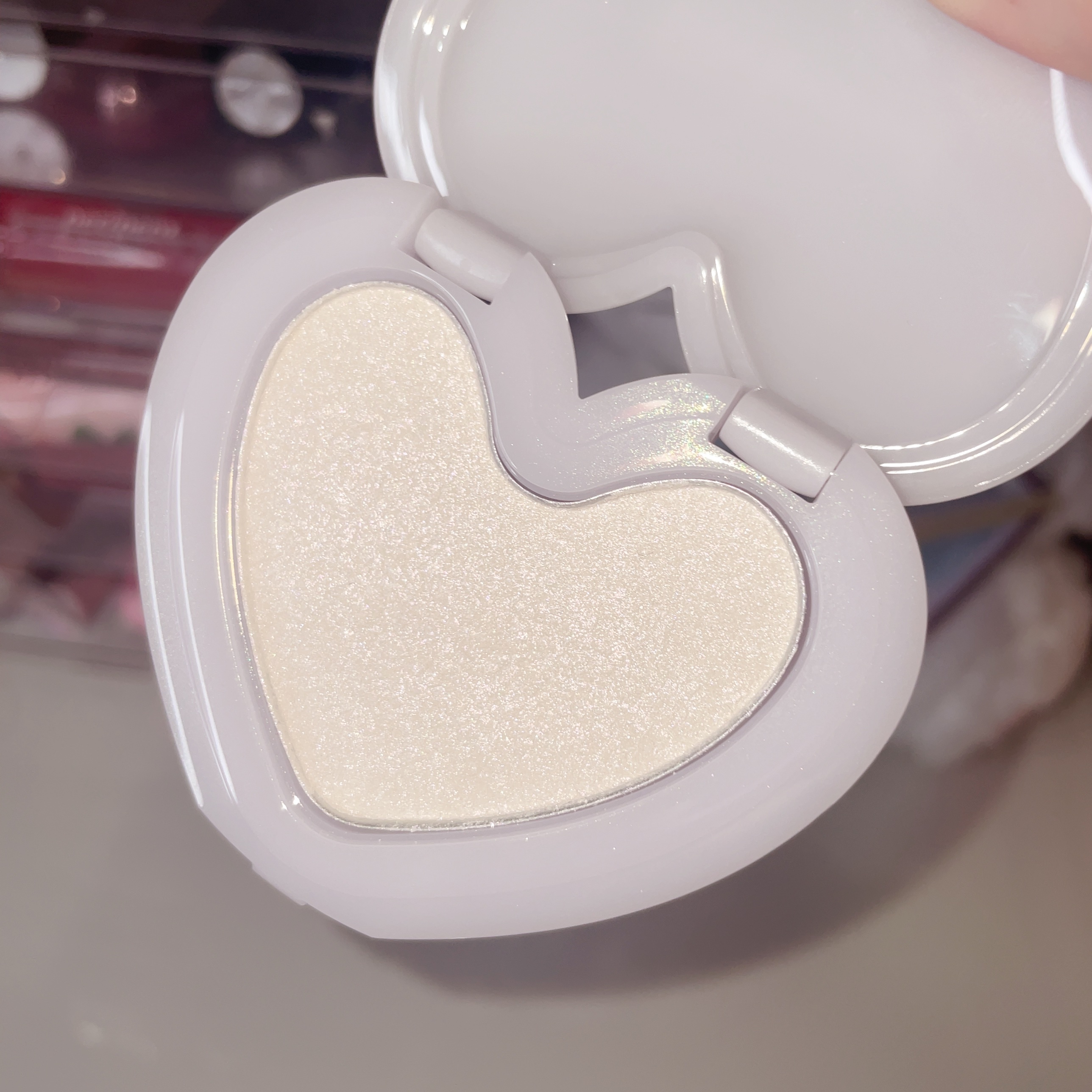あまりにも可愛すぎてずっと見てられる パッケージ😭🎀 ラメ感が強めで頬がキラキラになります デイリー使いだとマットチークと組み合わせてラメ感を少し抑えるのが個人的にはおすすめです💘 なによりパッケージが超絶可愛いから持ってるだけでテンションが上がる⤴️⤴️⤴️