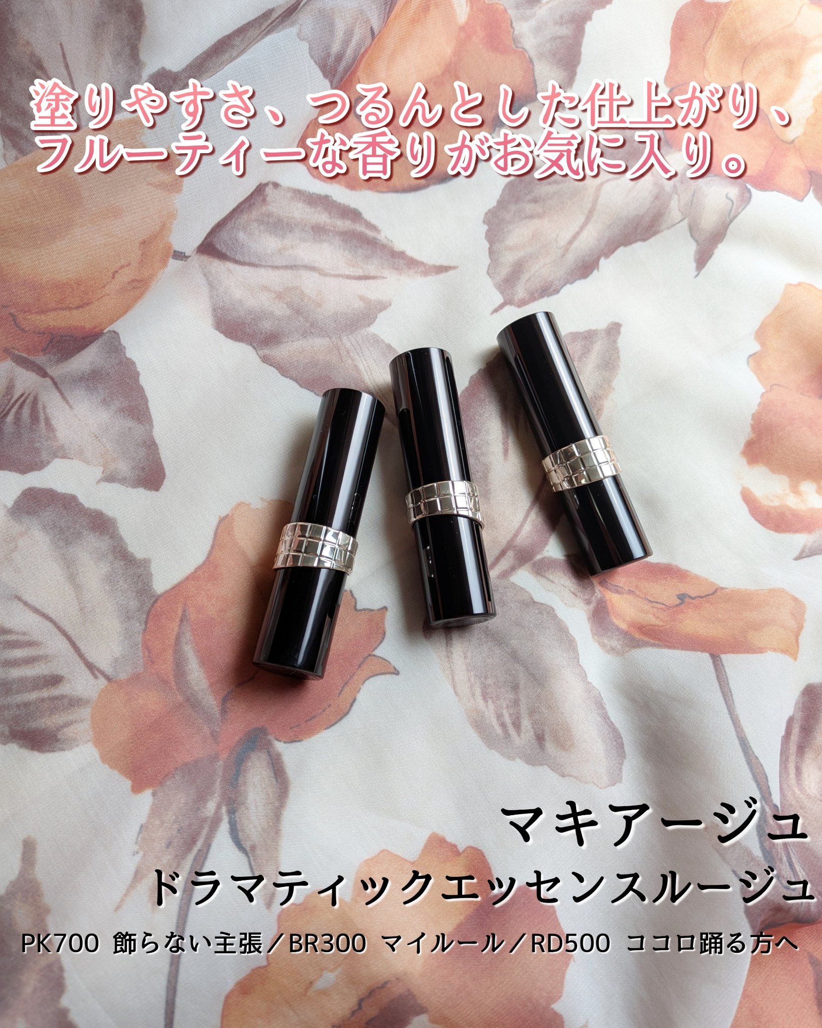 マキアージュさまからいただきました𑁍𓏸𓈒✼••┈┈••✼••┈┈••✼••┈┈••✼••┈┈••✼マキアージュドラマティックエッセンスルージュBR300マイルールRD500ココロ踊る方へPK700飾らない主張各3300円(税込)✼••┈┈••...