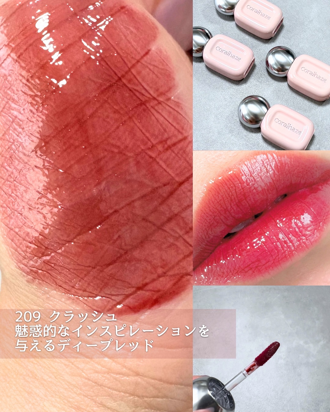 🏷:Coralhazeデュードロップティント全8色展開各¥1650🌷201Fairy🌷205Honeydew🌷208Lure🌷209CrushCoralhazeからガラスのようなうるツヤリップが叶う水滴ティントが新登場👏🏻✨️透け感×高発色...