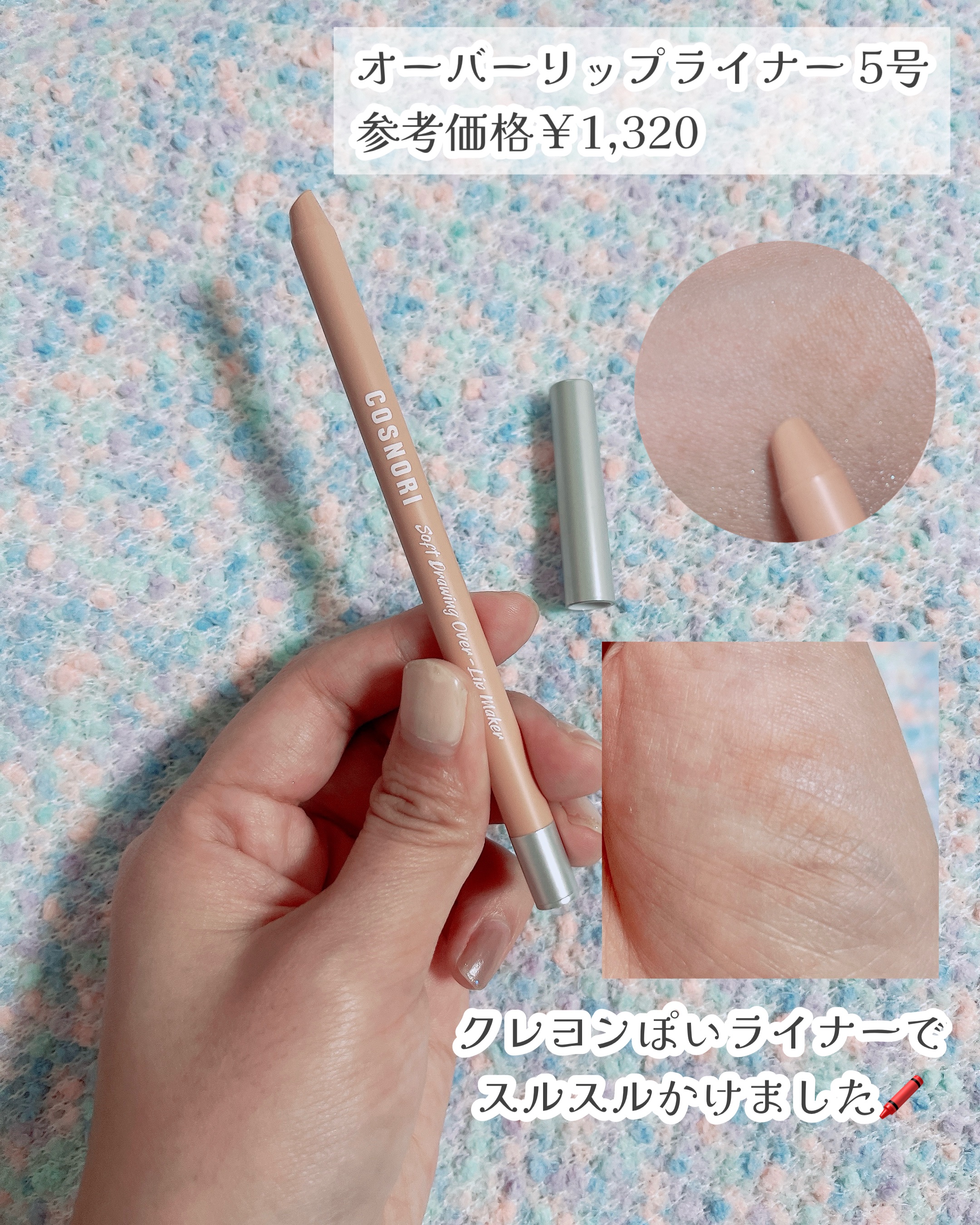 🤍私だけのコスノリメイクレシピ🤍@cosnori_jp毎日使う位お気に入りはウェーブティント10号コーラルブーケ🌷イエベの私の顔が明るく見えるしナチュラルな血色感に仕上がる✨オーバーリップライナーで唇の山だけちょっと整えて使うよ✨ユアースキン...