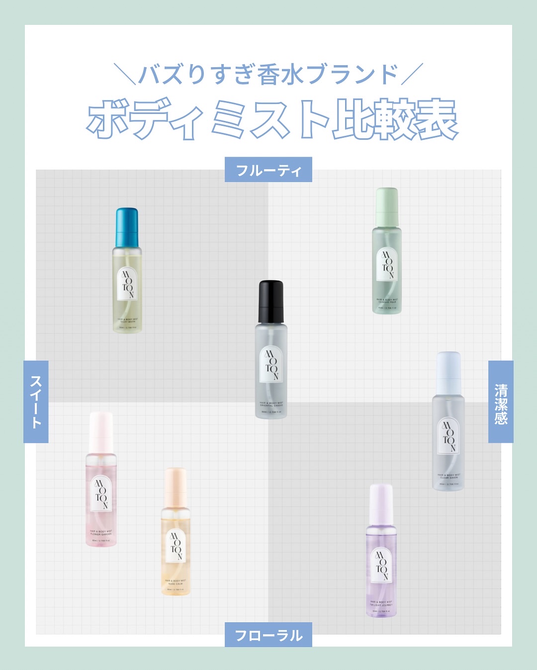MOTONモトンヘア&ボディミストフラワーガーデン/トワイライトジャーニー各80ml/¥1,760(税込)美容保湿成分も贅沢に配合した香水のような贅沢な香りをふんわり纏うヘア&ボディミスト🌟優しい香りなのに高級感ある香りが長時間長持ち◎フラワ...