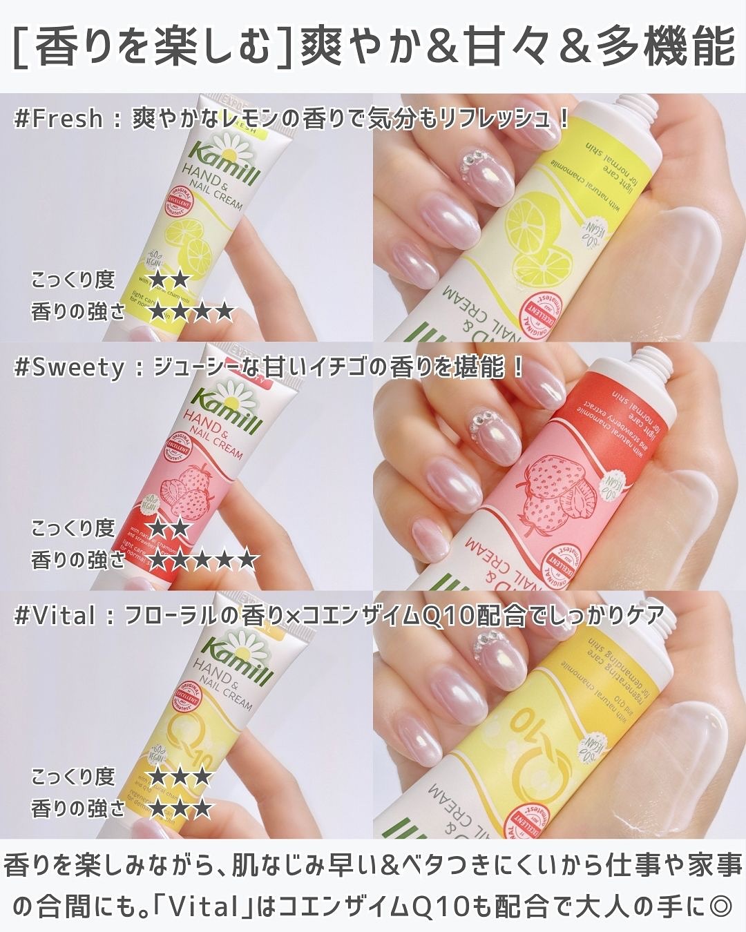 #PR#Kamill@Kamill_jpさまからいただきましたハンド&ネイルクリームセットVital🧡Sensitive💙Sweety❤️Fresh💛Classic💚の5本セットでギフトにもぴったり✨どれもいい香りだけど私は甘い香りのSwee...
