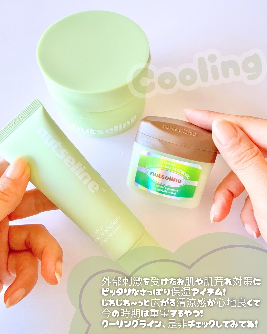 #PRnutselineさまからいただきました💐nutseline・シカカーミングバームストロング・シカパッド・シカサンセラム夏のゆらぎ肌をやさしくケアする「シカライン」🌿共通して清涼感のある爽やかな使い心地、レモングラス系のさっぱりとした...