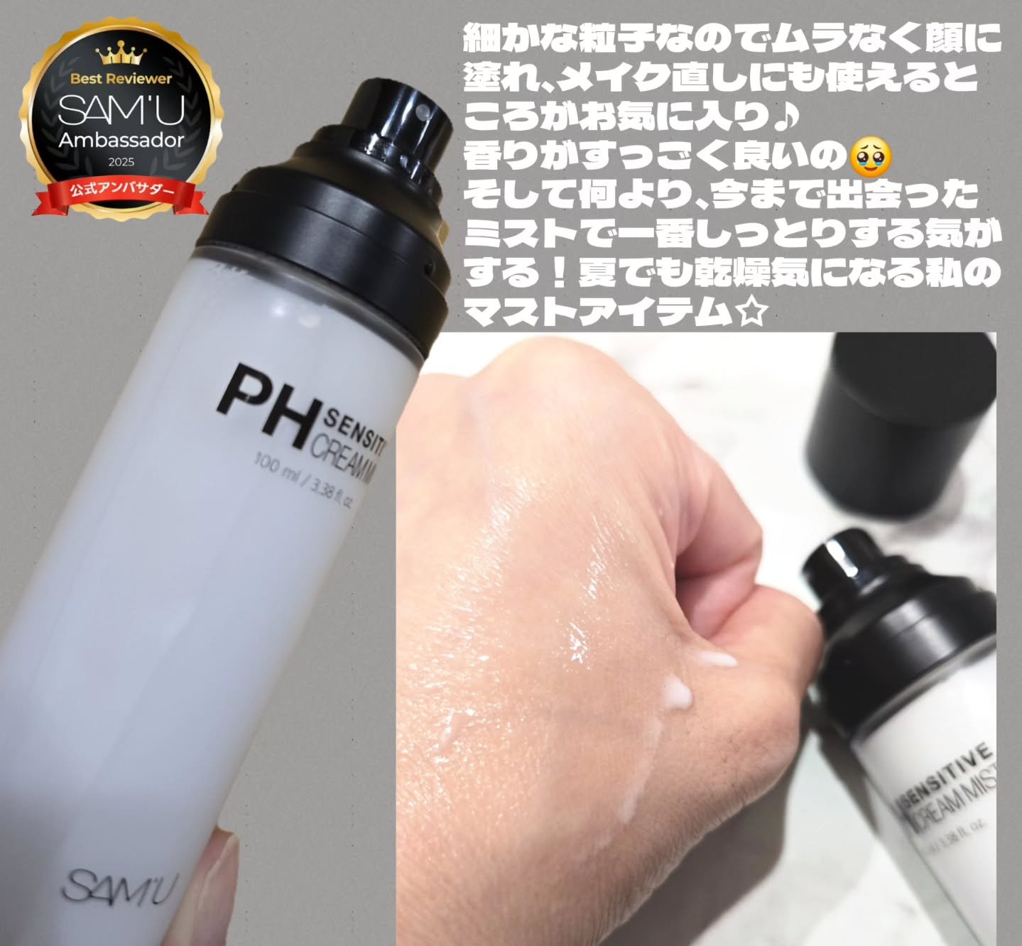 SAM'UPHセンシティブクリームミスト🫧SAM'U様のアンバサダーとして10月も活動させていただきました👑今回ご紹介したいのは、3秒うるおいチャージ!クリームから生まれたミスト✨✔️セラミド保湿チャージ クリーム一本分の保湿感。✔️マイク...