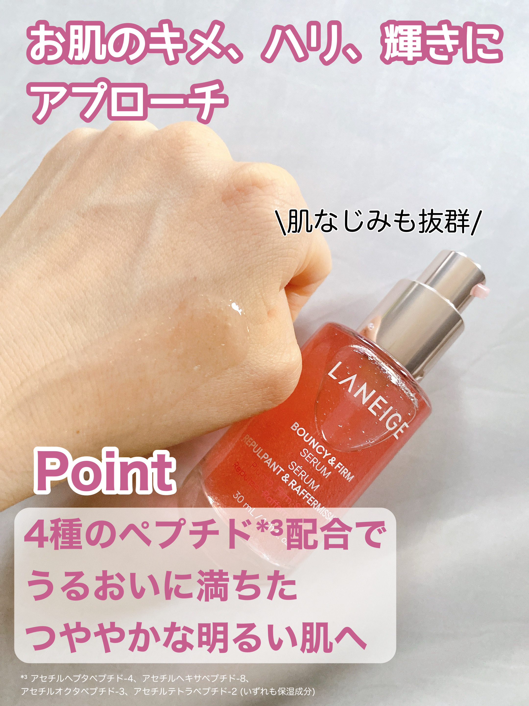 LANEIGEバウンシーセラム@laneige_jp様可愛いピンクのセラム💞とろみのあるテクスチャーで、お肌にしっとり馴染むのに軽い使用感でベタつき知らず!特に乾燥が気になる日のメイク前はファンデーションに1滴垂らすだけでファンデのノリも変わ...