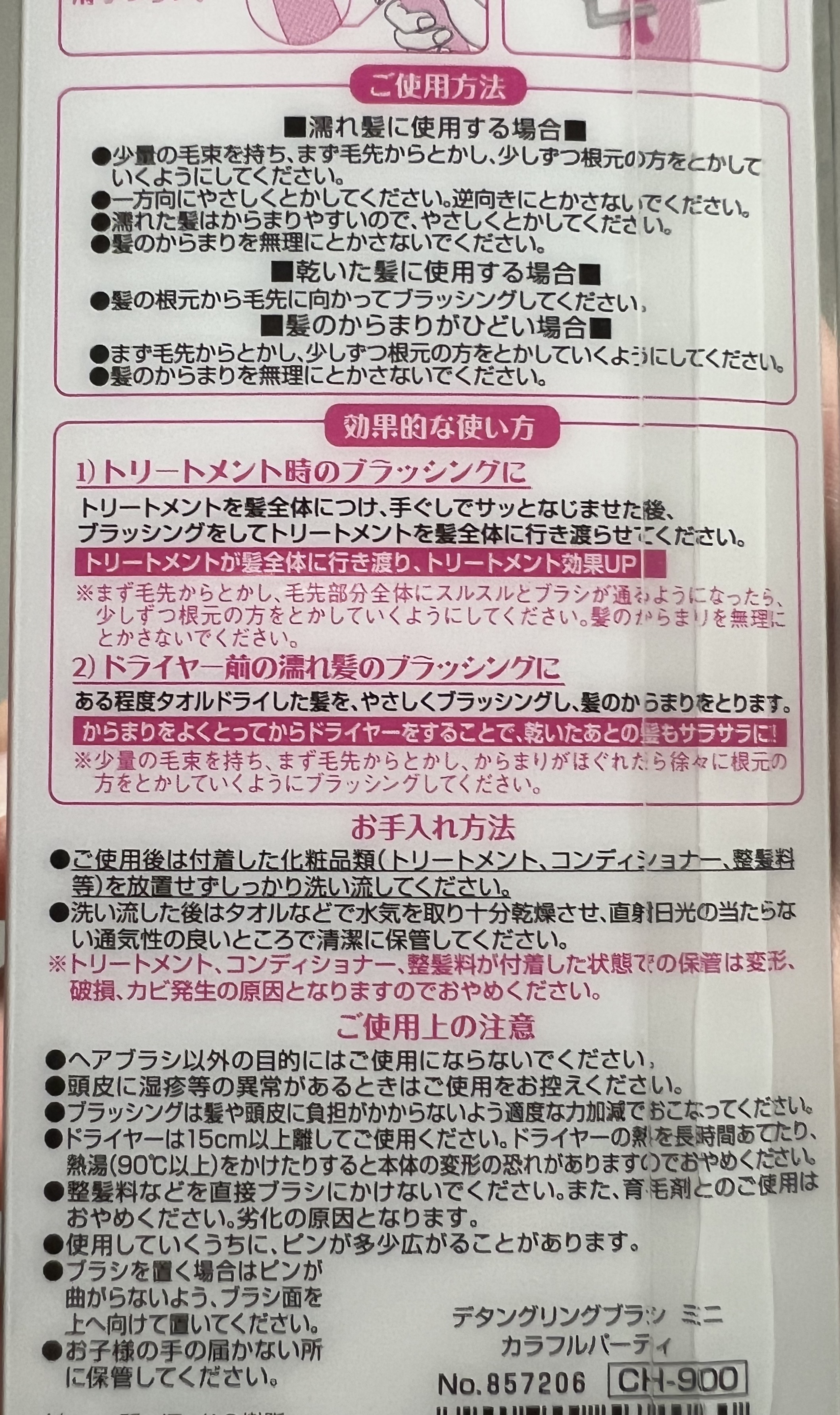 | 樹脂製で硬さが程よく、頭皮をマッサージしてくれます!インバスでもアウトバスでも使えるのが♪ | 詳細を見る | ||