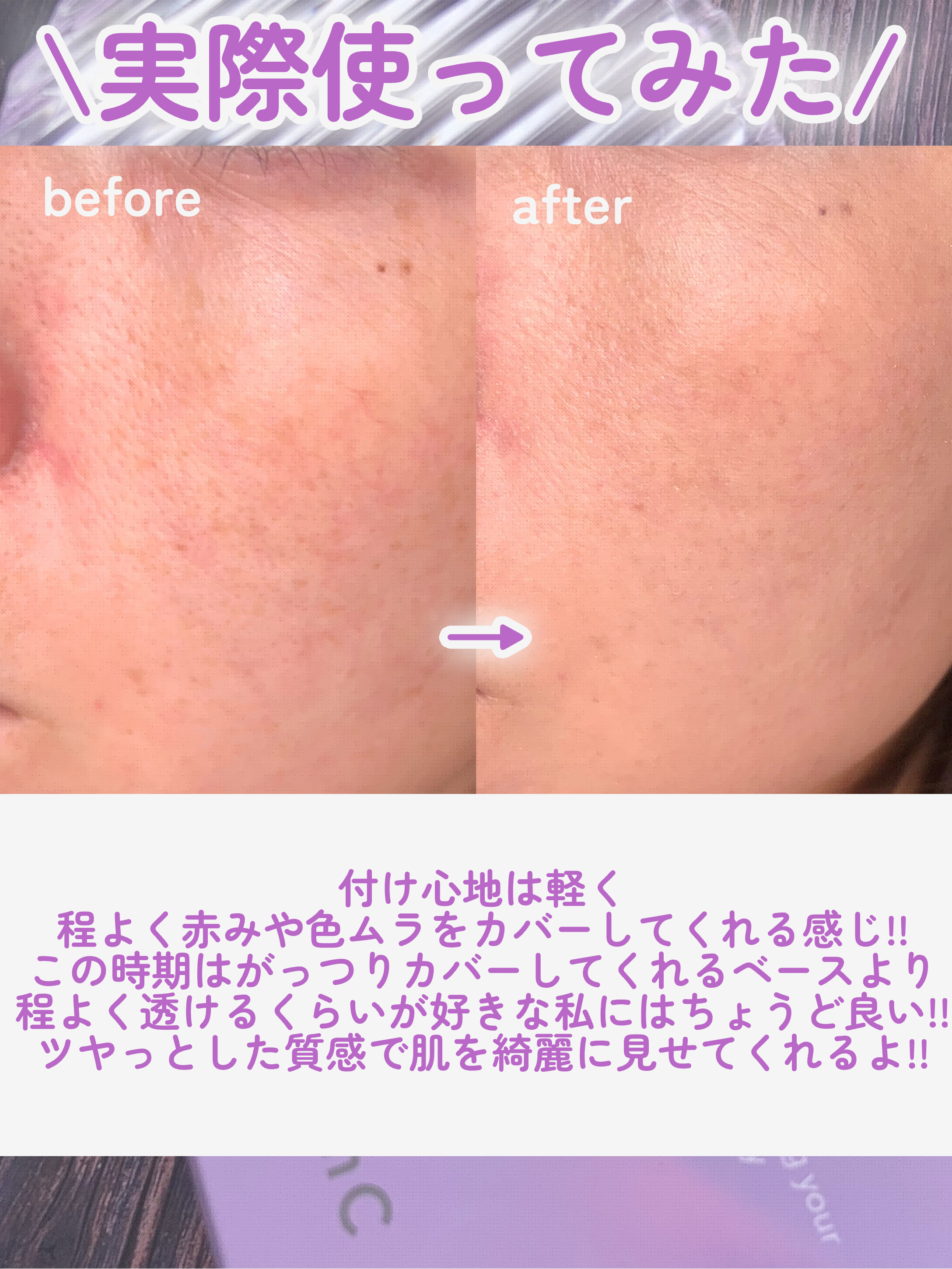 仕上がり綺麗。崩れにくい。乾燥崩れもしにくかった。 嫌なところ1個もない ツヤが綺麗な白玉肌が長時間続くところが好き!! 1日使ってても「早くメイク落とした〜い」となりにくいので肌への負担も感じにくい