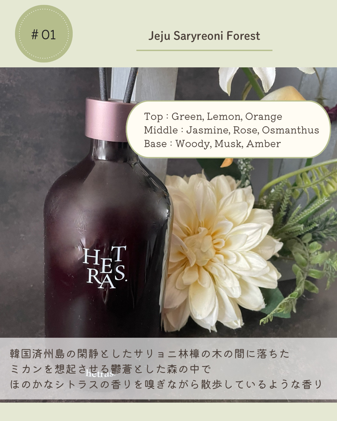 hetras.プレミアムディフューザーJejuSaryeoniForest500ml×23500円(税込)韓国オリーブヤングで人気のプレミアムディフューザー♡置くだけでおしゃれな空間に🌟スタイリッシュなパケでインテリアにもおすすめ🩷韓国済州島...