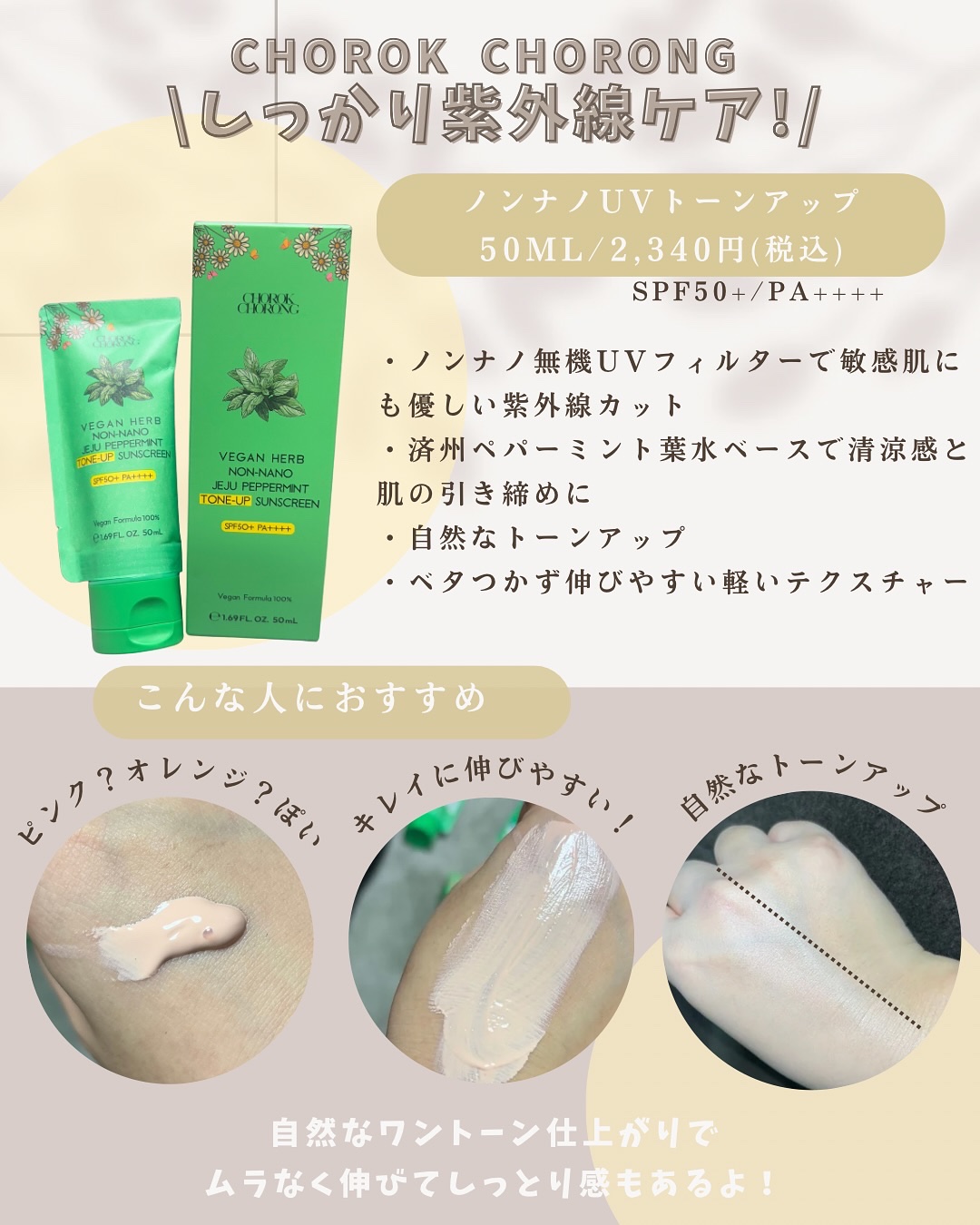 .✾CHOROKCHORONG・ビーガントナーパッド・ビーガンハーブヒアルロン酸セラム・ノンナノUVトーンアップクリーム・ペパーミントブライトニングマスク・旅行用ペパーミントトナーパッド..ビーガントナーパッドは澄んだチェジュ産ペパーミント葉...