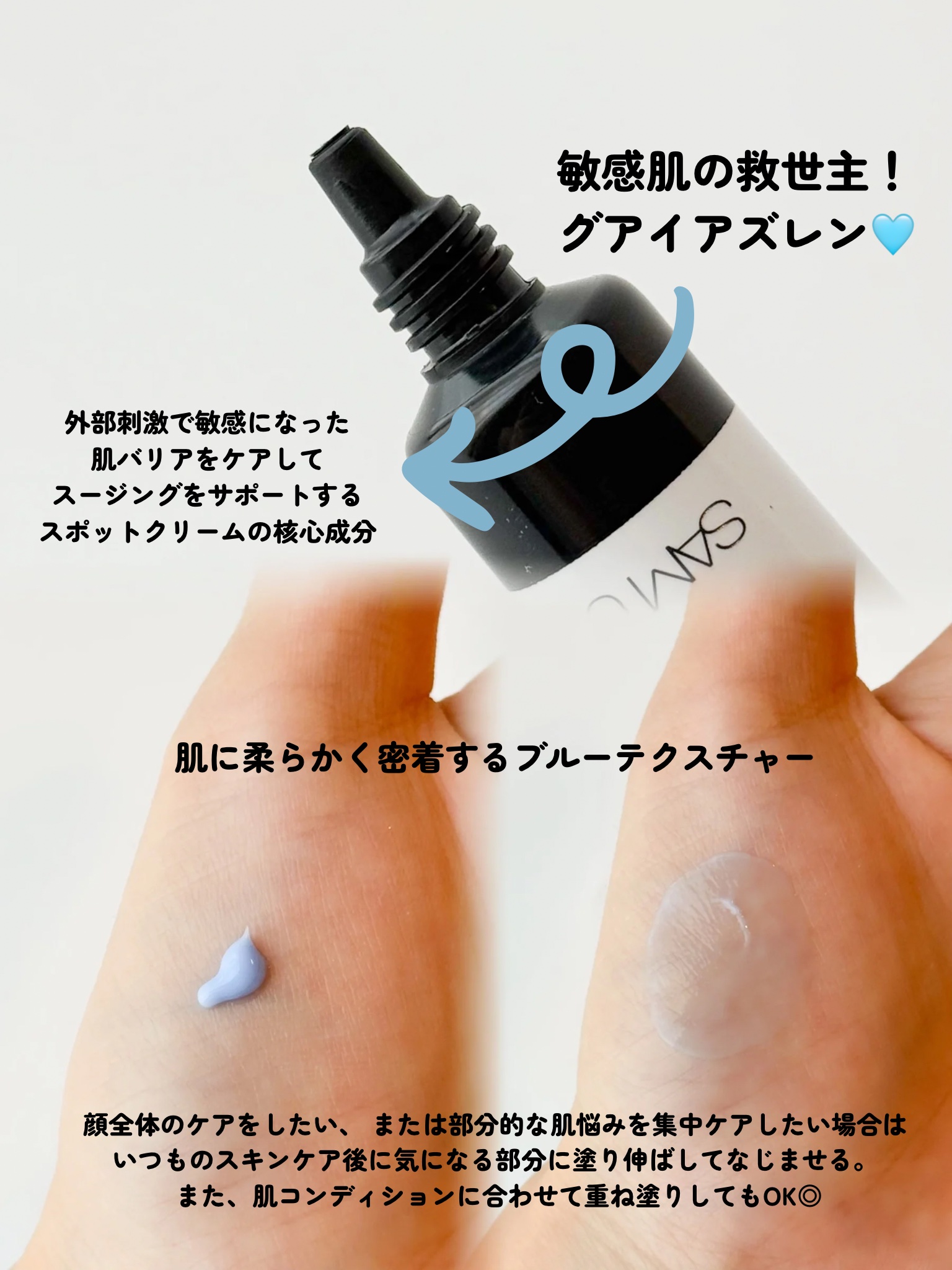 サミュさんから頂きました♡\PHSENSTIVESPOTCREAM/ユーカリの葉っぱ🌿から抽出されたグアイアズレン700ppm含有ブルーテクスチャーのクリーム💙スポット使いでもいいし顔全体に薄く伸ばすのもあり.ᐟ.ᐟ低刺激で肌のバリア機能を強...