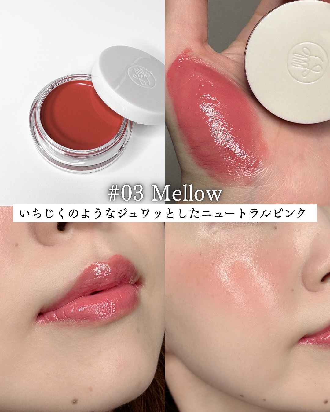 肌に溶け込むように馴染んで、ジュワッとした血色感を出してくれます。 肌に直接チップで置いて、指でささっとぼかすだけで綺麗なチークが完成。 Fujikoは全体的に柔らかい雰囲気かな。