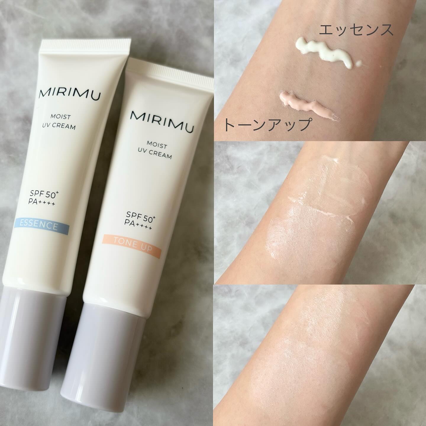 MIRIMUさまからいただきました。୨୧𓏸𓈒𓏸𓈒୨୧MIRIMUモイストUVクリームトーンアップ、エッセンスSPF50+/PA++++୨୧𓏸𓈒𓏸𓈒୨୧SPF50+/PA++++ の日焼け止めクリームなのに、すっと伸...