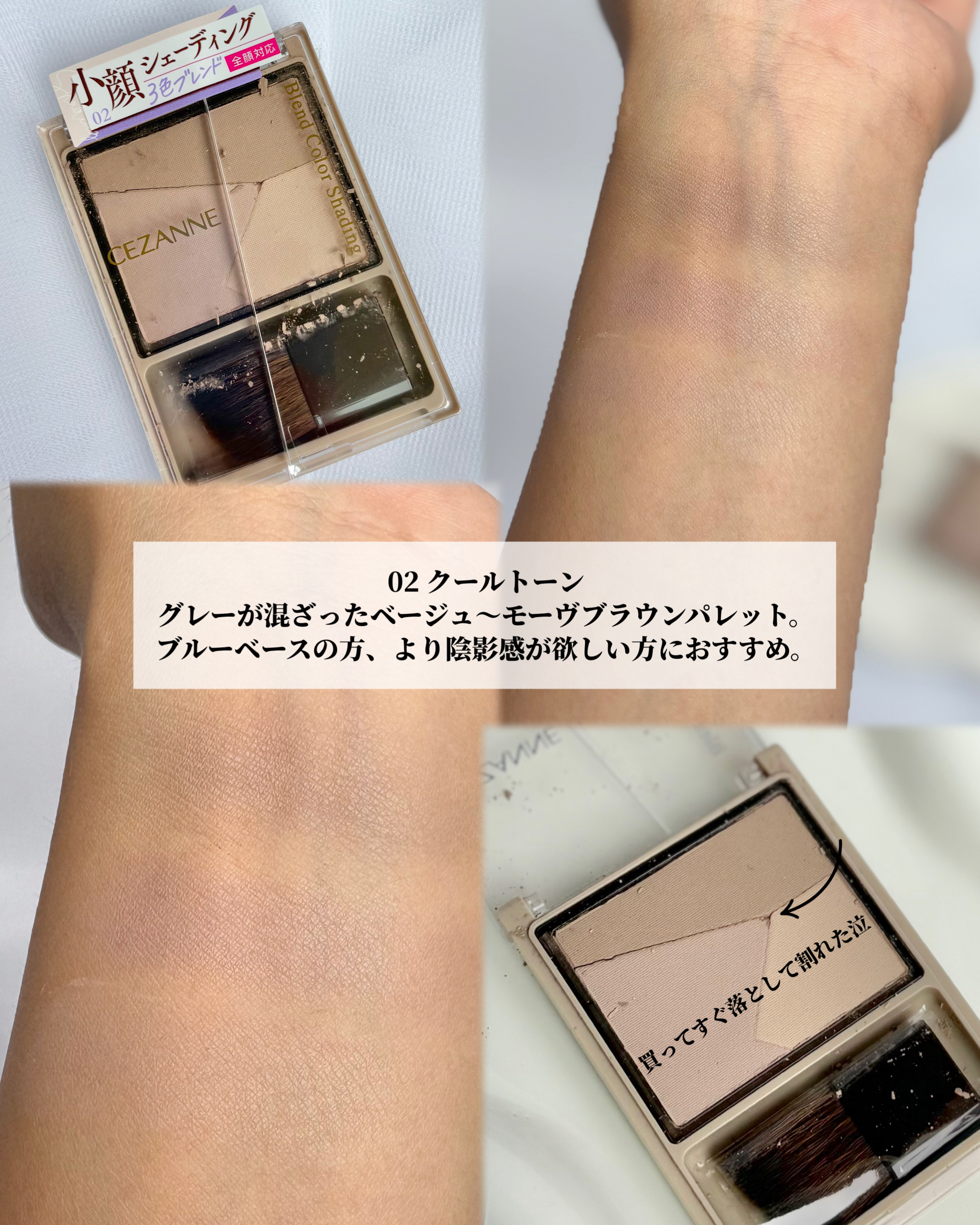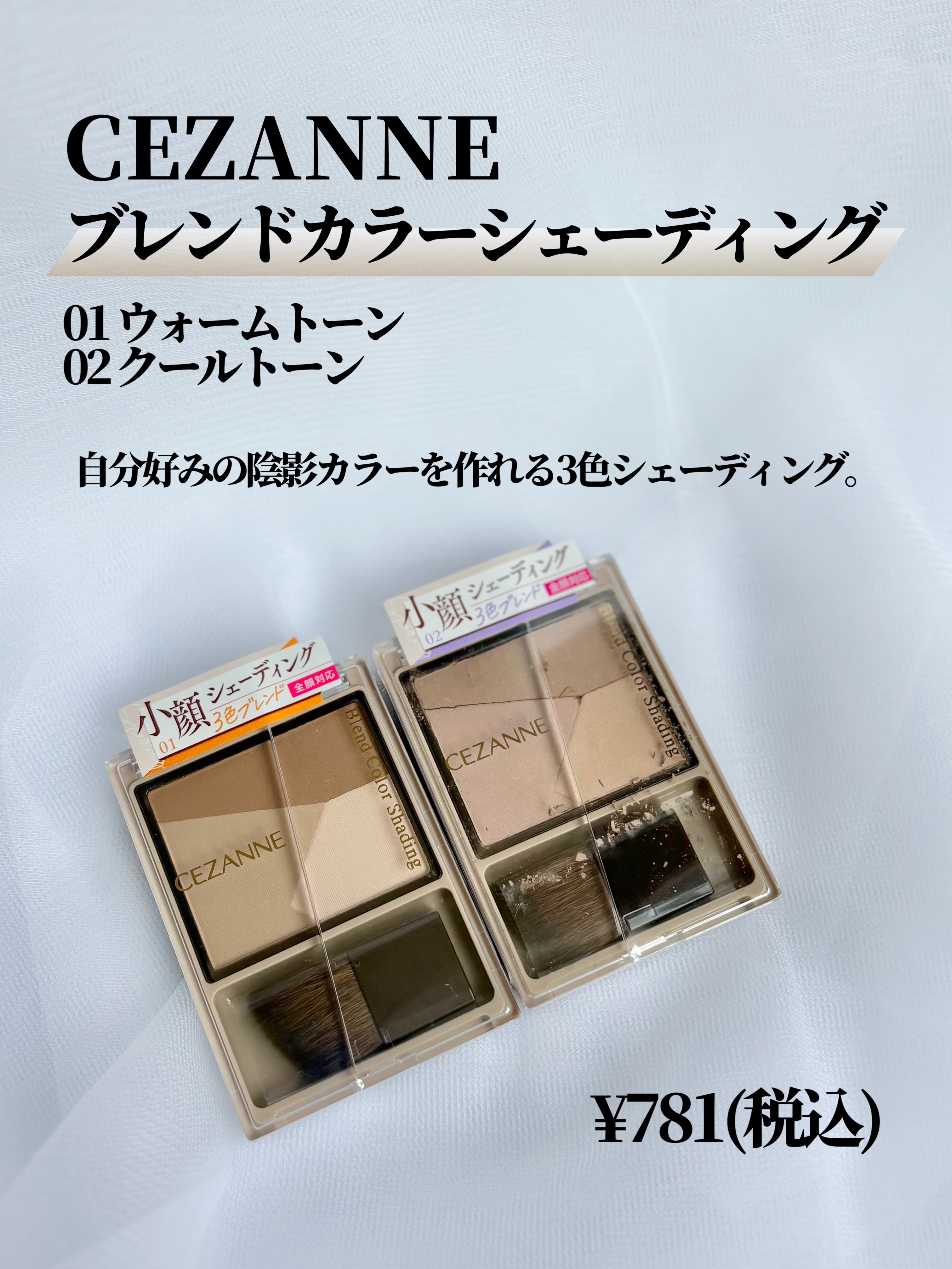 💥大絶賛されてるけど若干辛口ごめん💣ϟ⁺⁎𓊆ྀི𝗖𝗘𝗭𝗔𝗡𝗡𝗘𓊇ྀི✔︎ブレンドカラーシェーディング𝟎𝟏ウォームトーン𝟎𝟐クールトーン¥781(LIPS調べ🔍)自然な陰影をプラスする3色グラデーションシェーディング。入れたい部分に合わせて濃淡...