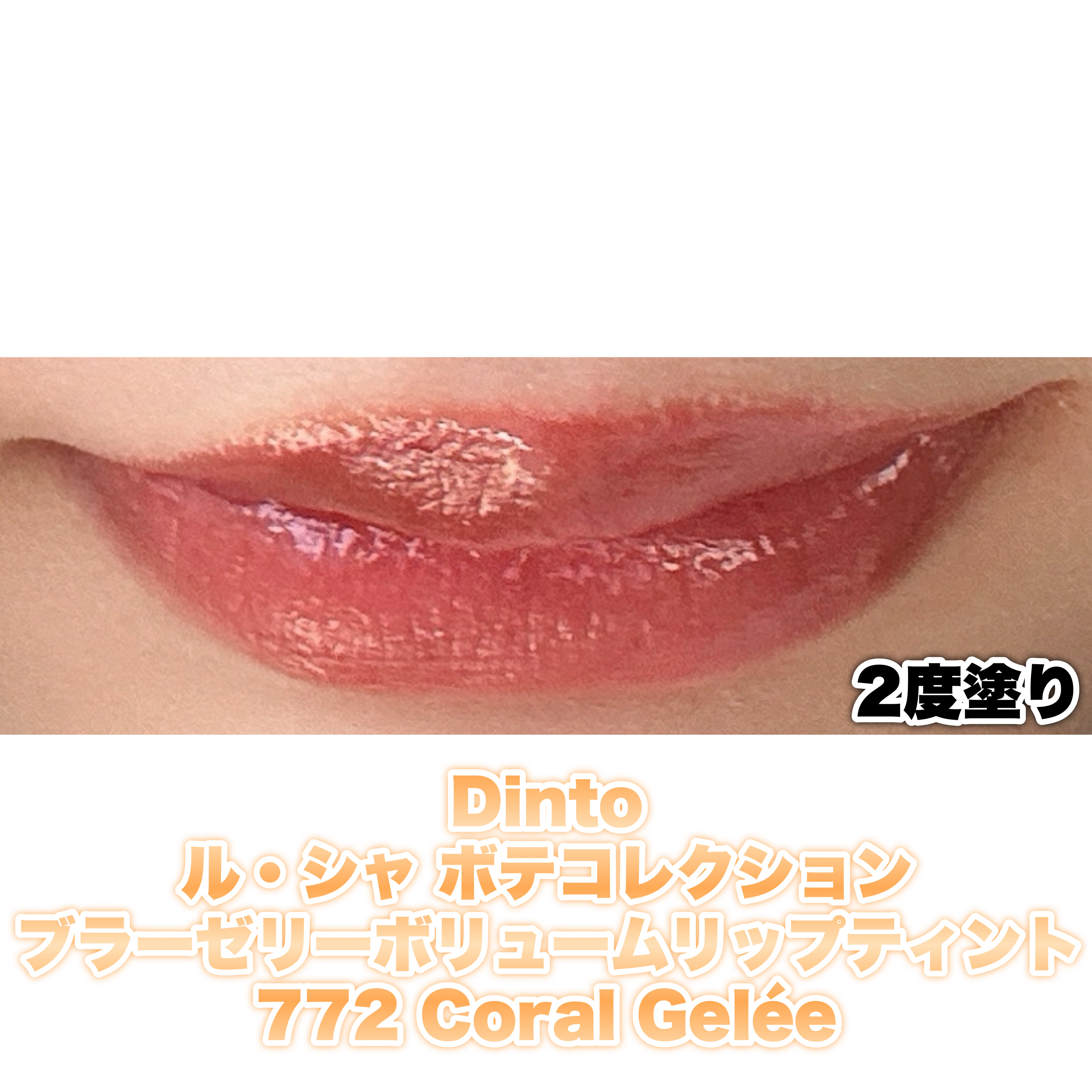 スースー感がたまらないプルプルツヤティントDintoル・シャボテコレクションブラーゼリーボリュームリップティント772CoralGelée774NuttyGelée¥1,870つけるとスースーするタイプぷっくりツヤツヤな仕上がり定着も良くて、...