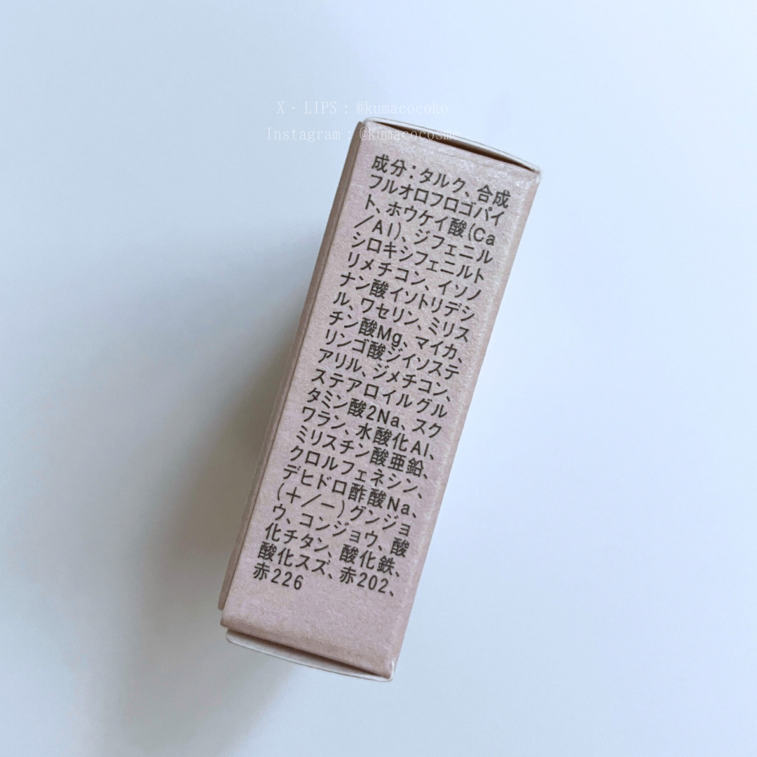 - <01 ブリスフル バーガンディ> タルク、マイカ、アルミナ、ジフェニルシロキシフェニルトリメチコン、イソノナン酸イソトリデシル、ワセリン、リンゴ酸ジイソステアリル、ステアロイルグルタミン酸2Na、スクワラン、ジメチコン、イソステアリン酸ソルビタン、水酸化Al、乳酸オクチルドデシル、ステアリン酸、ミリスチン酸亜鉛、ミリスチン酸、エチルパラベン、メチルパラベン、デヒドロ酢酸Na、(+/-)グンジョウ、コンジョウ、シリカ、酸化チタン、酸化鉄、酸化スズ、ホウケイ酸(Ca/Al)、黄4、赤202、赤226 <02 ディフューズド アンバー> タルク、マイカ、アルミナ、ジフェニルシロキシフェニルトリメチコン、イソノナン酸イソトリデシル、ワセリン、リンゴ酸ジイソステアリル、ステアロイルグルタミン酸2Na、スクワラン、ジメチコン、イソステアリン酸ソルビタン、水酸化Al、乳酸オクチルドデシル、ステアリン酸、ミリスチン酸亜鉛、ミリスチン酸、エチルパラベン、メチルパラベン、デヒドロ酢酸Na、(+/-)グンジョウ、コンジョウ、シリカ、酸化チタン、酸化鉄、酸化スズ、ホウケイ酸(Ca/Al)、黄4、赤202、赤226 <03 ラベンダー レース> タルク、マイカ、アルミナ、ジフェニルシロキシフェニルトリメチコン、イソノナン酸イソトリデシル、ワセリン、リンゴ酸ジイソステアリル、ステアロイルグルタミン酸2Na、スクワラン、ジメチコン、イソステアリン酸ソルビタン、水酸化Al、乳酸オクチルドデシル、ステアリン酸、ミリスチン酸亜鉛、ミリスチン酸、エチルパラベン、メチルパラベン、デヒドロ酢酸Na、(+/-)グンジョウ、コンジョウ、シリカ、酸化チタン、酸化鉄、酸化スズ、ホウケイ酸(Ca/Al)、黄4、赤202、赤226 <04 ボヘミアン ローズ> タルク、マイカ、アルミナ、ジフェニルシロキシフェニルトリメチコン、イソノナン酸イソトリデシル、ワセリン、リンゴ酸ジイソステアリル、ステアロイルグルタミン酸2Na、スクワラン、ジメチコン、イソステアリン酸ソルビタン、水酸化Al、乳酸オクチルドデシル、ステアリン酸、ミリスチン酸亜鉛、ミリスチン酸、エチルパラベン、メチルパラベン、デヒドロ酢酸Na、(+/-)グンジョウ、コンジョウ、シリカ、酸化チタン、酸化鉄、酸化スズ、ホウケイ酸(Ca/Al)、黄4、赤202、赤226 <06 ドリーミー フューシャ> タルク、マイカ、アルミナ、ジフェニルシロキシフェニルトリメチコン、イソノナン酸イソトリデシル、ワセリン、リンゴ酸ジイソステアリル、ステアロイルグルタミン酸2Na、スクワラン、ジメチコン、イソステアリン酸ソルビタン、水酸化Al、乳酸オクチルドデシル、ステアリン酸、ミリスチン酸亜鉛、ミリスチン酸、エチルパラベン、メチルパラベン、デヒドロ酢酸Na、(+/-)グンジョウ、コンジョウ、シリカ、酸化チタン、酸化鉄、酸化スズ、ホウケイ酸(Ca/Al)、黄4、赤202、赤226 <10 サハラ ベージュ> タルク、マイカ、アルミナ、ジフェニルシロキシフェニルトリメチコン、イソノナン酸イソトリデシル、ワセリン、リンゴ酸ジイソステアリル、ステアロイルグルタミン酸2Na、スクワラン、ジメチコン、イソステアリン酸ソルビタン、水酸化Al、乳酸オクチルドデシル、ステアリン酸、ミリスチン酸亜鉛、ミリスチン酸、エチルパラベン、メチルパラベン、デヒドロ酢酸Na、(+/-)グンジョウ、コンジョウ、シリカ、酸化チタン、酸化鉄、酸化スズ、ホウケイ酸(Ca/Al)、黄4、赤202、赤226 <05 コーラル ドリフト> タルク、マイカ、アルミナ、ジフェニルシロキシフェニルトリメチコン、イソノナン酸イソトリデシル、ワセリン、リンゴ酸ジイソステアリル、ステアロイルグルタミン酸2Na、スクワラン、ジメチコン、イソステアリン酸ソルビタン、水酸化Al、乳酸オクチルドデシル、ステアリン酸、ミリスチン酸亜鉛、ミリスチン酸、エチルパラベン、メチルパラベン、デヒドロ酢酸Na、(+/-)グンジョウ、コンジョウ、シリカ、酸化チタン、酸化鉄、酸化スズ、ホウケイ酸(Ca/Al)、黄4、赤202、赤226 <07 フローティング ペダルズ> タルク、マイカ、アルミナ、ジフェニルシロキシフェニルトリメチコン、イソノナン酸イソトリデシル、ワセリン、リンゴ酸ジイソステアリル、ステアロイルグルタミン酸2Na、スクワラン、ジメチコン、イソステアリン酸ソルビタン、水酸化Al、乳酸オクチルドデシル、ステアリン酸、ミリスチン酸亜鉛、ミリスチン酸、エチルパラベン、メチルパラベン、デヒドロ酢酸Na、(+/-)グンジョウ、コンジョウ、シリカ、酸化チタン、酸化鉄、酸化スズ、ホウケイ酸(Ca/Al)、黄4、赤202、赤226 <08 エアリー コーラル> タルク、マイカ、アルミナ、ジフェニルシロキシフェニルトリメチコン、イソノナン酸イソトリデシル、ワセリン、リンゴ酸ジイソステアリル、ステアロイルグルタミン酸2Na、スクワラン、ジメチコン、イソステアリン酸ソルビタン、水酸化Al、乳酸オクチルドデシル、ステアリン酸、ミリスチン酸亜鉛、ミリスチン酸、エチルパラベン、メチルパラベン、デヒドロ酢酸Na、(+/