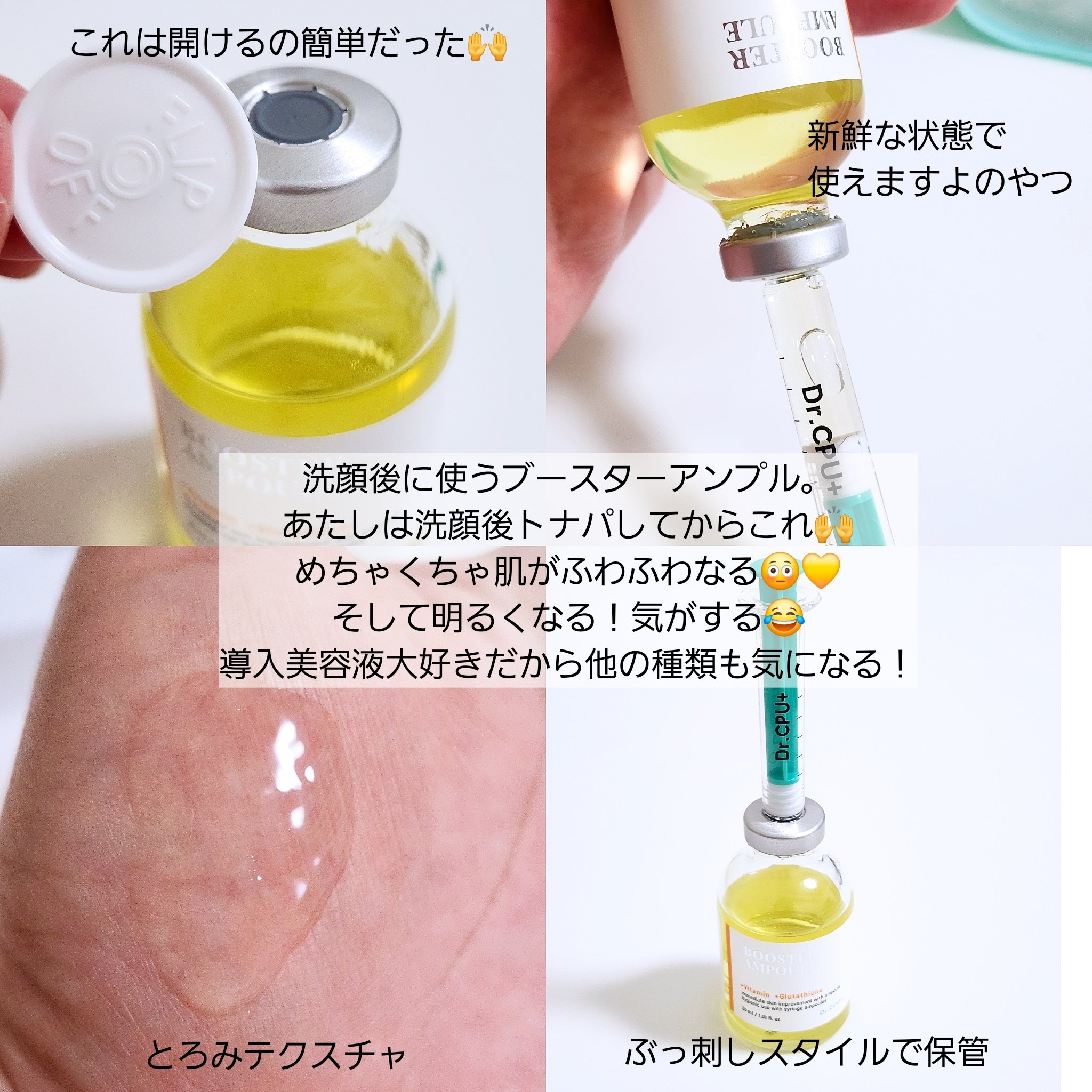 çŽ500åã§è²·ããã®ãããããããæž¡éã®ãã³ã«è³Œå ¥ããŠããŸããªãããçŸå®¹æ¶²ã·ãªãŒãºã®äžã€ã§ãïŒã䜿ã£ãååãDr.CPU+BoosterAmpoule30ml+Vitamin+ClutathioneïŒâ©5,000ïŒãååã®ç¹åŸŽãâ¢ãããã©ãªã®...