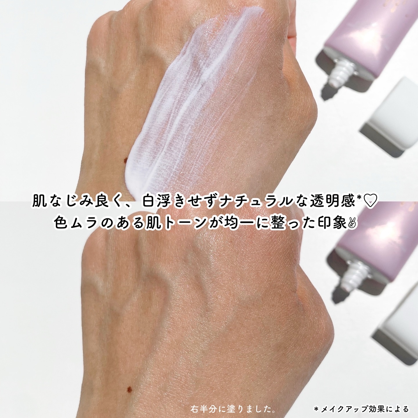 皮脂コントロールパウダー配合で、汗や皮脂のベタつきや梅雨時のジメジメが気になる時にも サラッとした肌に仕上げてくれます👌 これ使うだけで肌がトーンアップ*できるし 色ムラもカバーできるから、 ノーファンデ派さんにもおすすめです。 ほんのりとツヤ感もあり、 プライマーとしても満足の使い心地です。