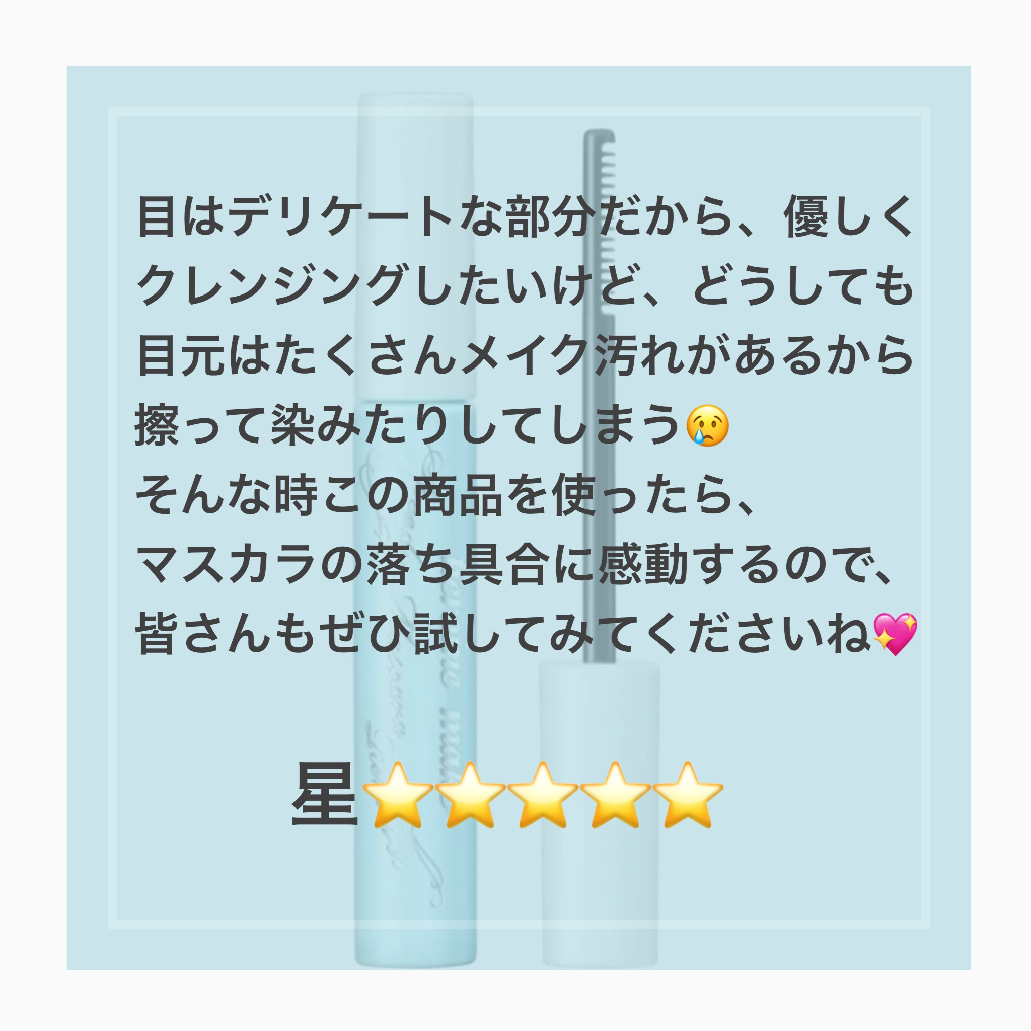 バチバチ強力マスカラも素早く落とす!! 落ちにくいウォータープルーフマスカラでも塗るだけで素早くなじみ溶けるようにするんと落ちる♡ まつ毛とまぶたに負担をかけにくいリムーバー✨ まつ毛ケア成分配合💗 無香料・無着色 1回使った時に感動しすぎて いったい何度リピすることになるんだろうって怖くなったアイテム😂💕