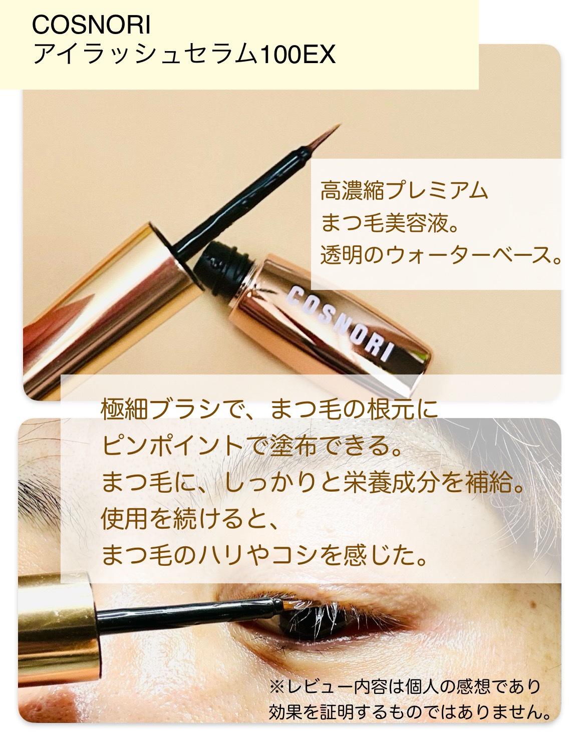 #PRCOSNORIまつ毛美容液8week使用レポ📝🧡COSNORI🧡アイラッシュセラム100EX超スリムなブラシで、まつ毛の根元ギリギリ狙ってケアできて良かった🙆♀️使いやすさって重要だよね。ケアして8week経過しましたが、まつ毛のはり...