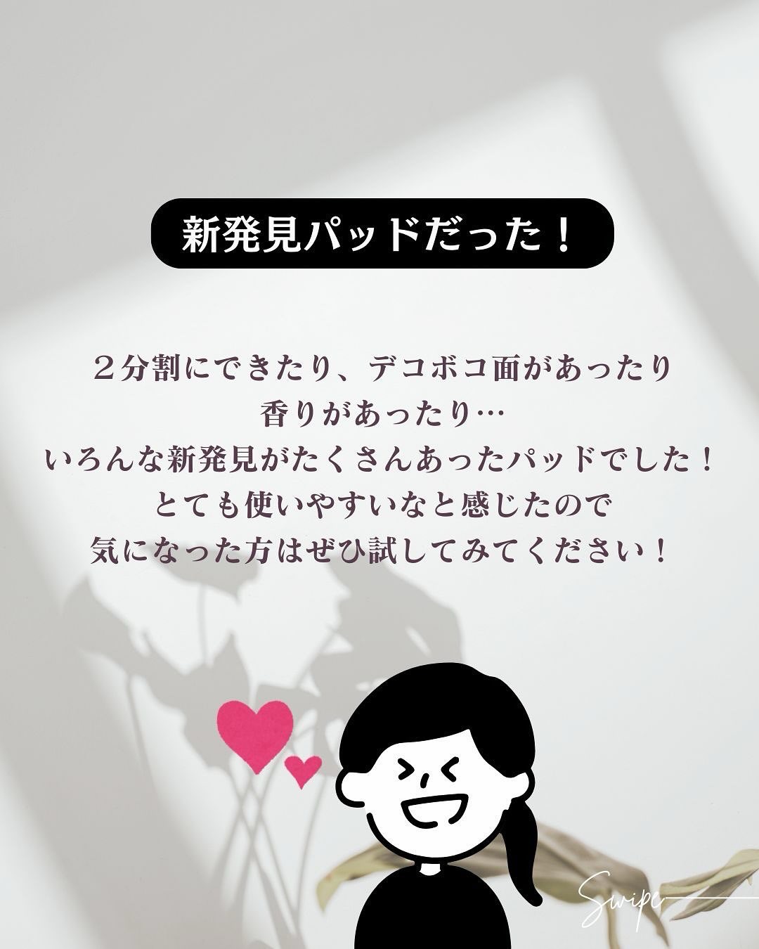| 肌のキメを整えてくれるパッド さっぱりとしているので夏場でも使いやすい。 | 詳細を見る | ||