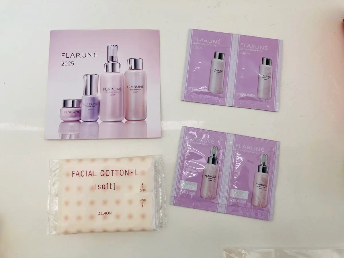 新フラルネも好み☺️💖✨モニターキャンペーンに当選しました✨✨⭐️ALBIONフラルネハイドロボムプラスフラルネフルリファインミルクfEMサンプル2つずつプラスでコットンが付いてきました♪使う順番は洗顔→フルリファインミルクfEM→ハイドロボ...