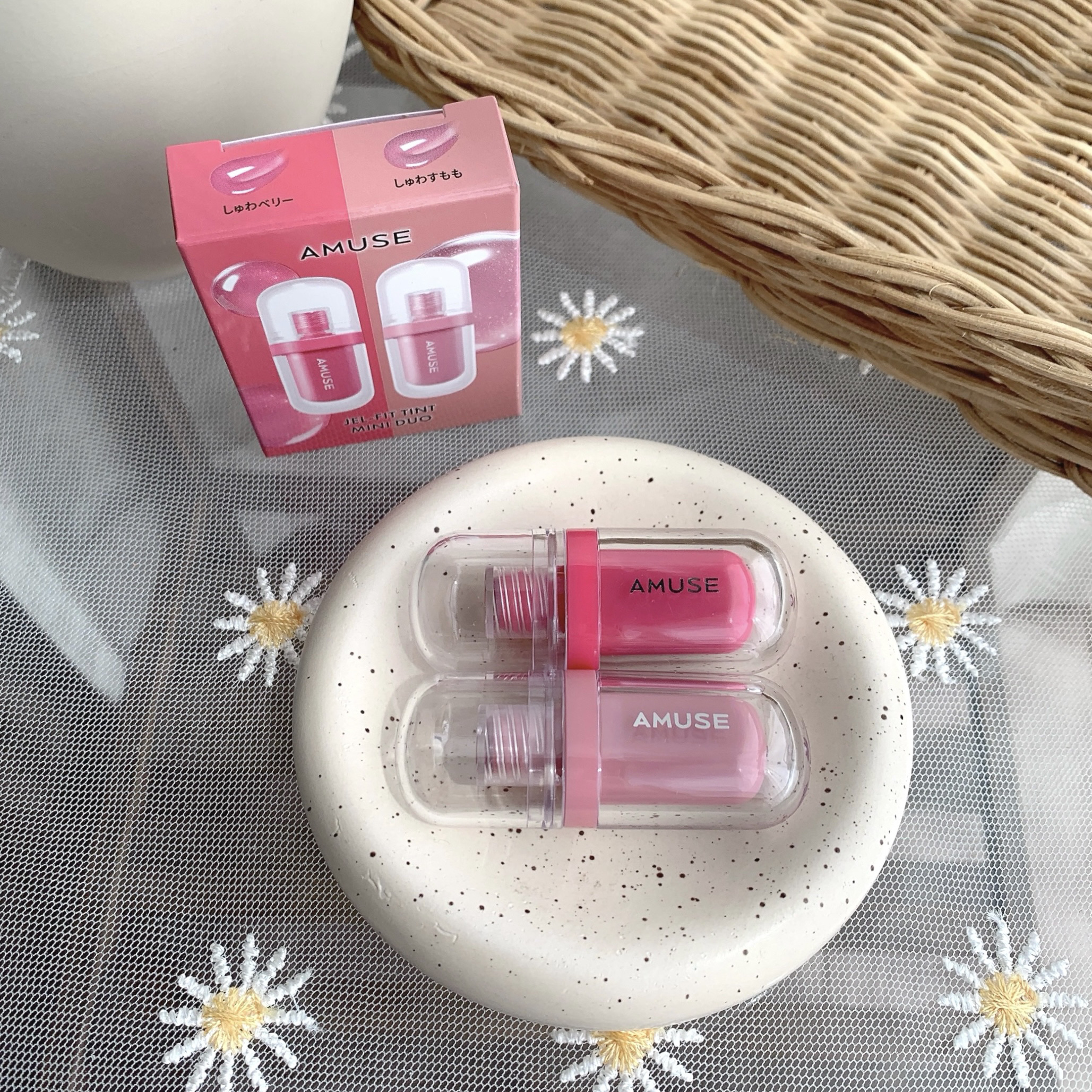 AMUSEからミニリップが登場💗ぷっくり感がかわいいジェルフィットティントのミニサイズはウォーム、ニュートラル、クールのパーソナルカラーで選べる2色セット🪄ジェルフィットティントミニデュオWARMSET🍑01モモジェリー&05ベージュフィグN...