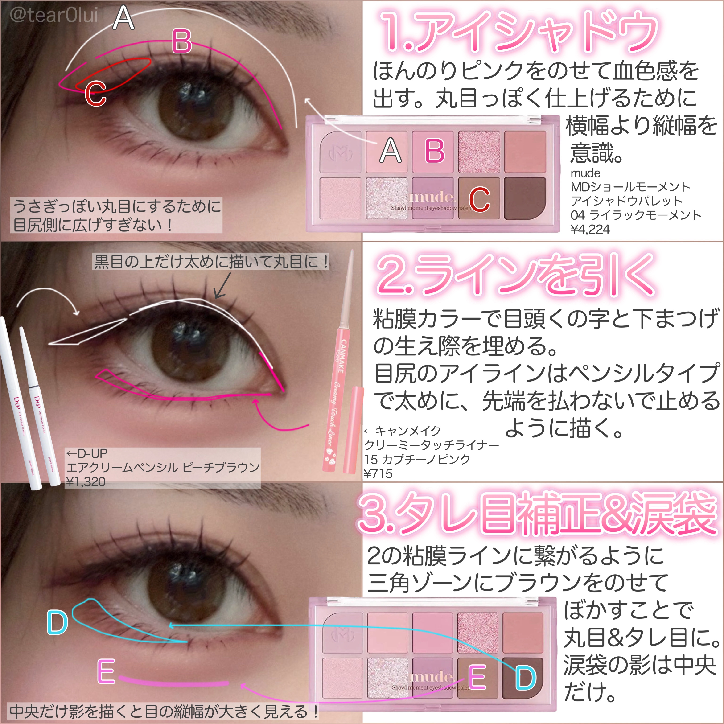 アイドル風アイメイクの方法🎀🪄ྀི🪄ྀི🪄ྀི使ったアイテム🎀SNIDELBEAUTYアイデザイナーn02🎀snidelニュアンスカラーアイライナー🎀SOOADORokheeEdgeEyeBrushNUN05okheeUnderEyeBrus...